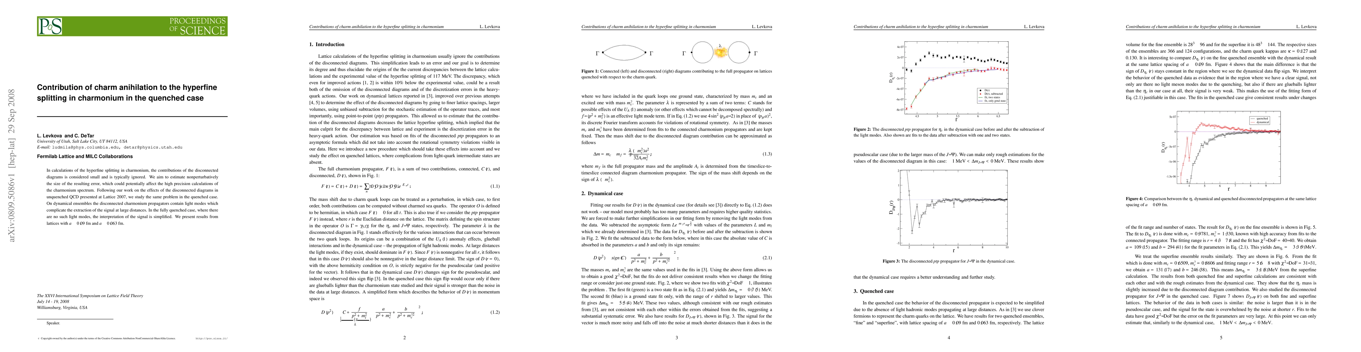 This paper estimates the nonperturbative contributions of charm annihilation to the hyperfine splitting in charmonium, focusing on the simplified interpretation in the fully quenched case without light modes. Results from lattices with different spacings are presented to assess the potential error in high precision calculations.