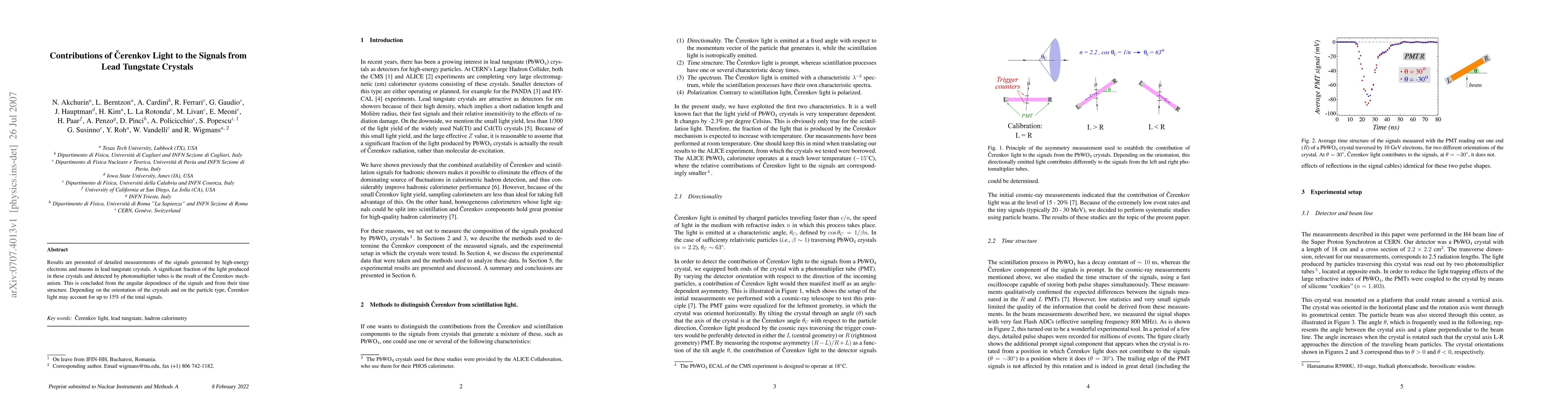 This study reveals that Cherenkov light contributes significantly to the signals detected in lead tungstate crystals when exposed to high-energy electrons and muons, accounting for up to 15% of the total signal, as evidenced by the angular dependence and time structure of the detected light.