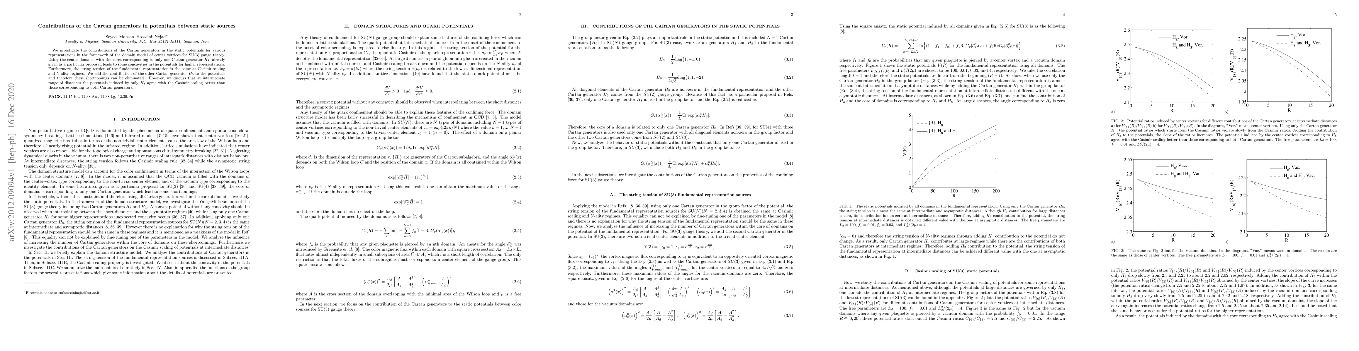 Research investigates Cartan generators in static potentials for SU(3) gauge theory, finding that adding one generator eliminates concavities but at intermediate range, potentials with both generators perform better in Casimir scaling.