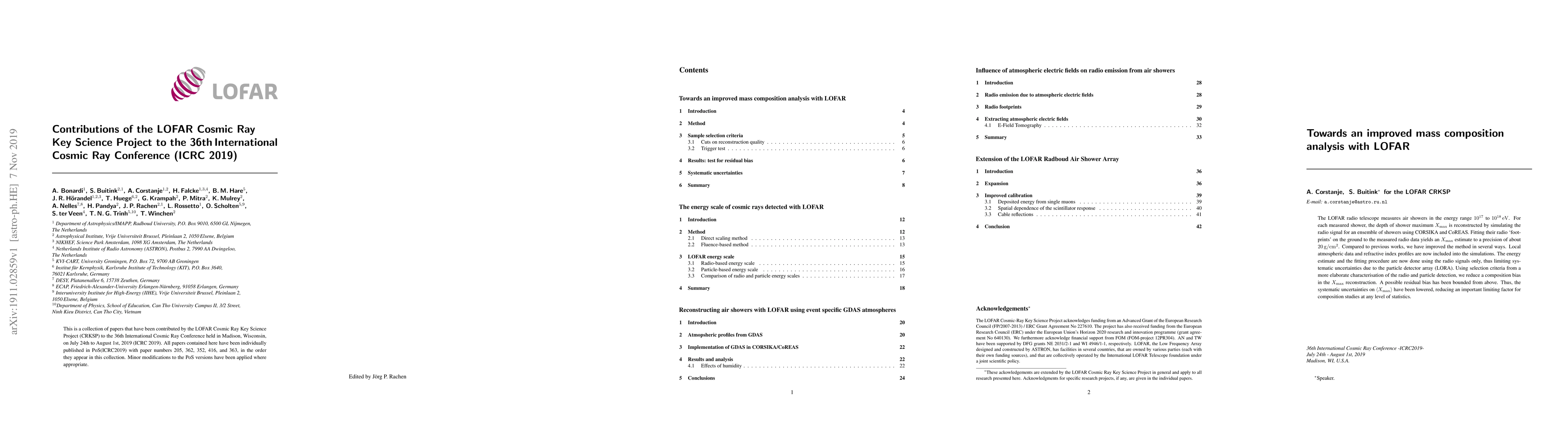 The LOFAR Cosmic Ray Key Science Project presented several papers at the 36th International Cosmic Ray Conference (ICRC 2019) in Madison, Wisconsin, focusing on advancements in cosmic ray research. These contributions, published in PoS(ICRC2019) with numbers 205, 362, 352, 416, and 363, underwent minor modifications for this collection.