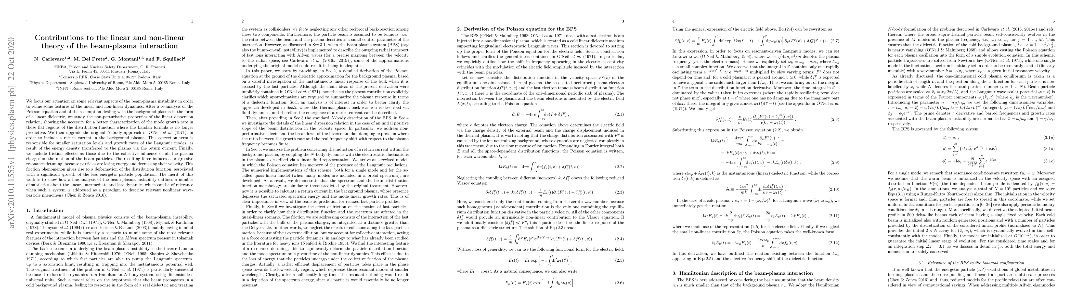 We focus our attention on some relevant aspects of the beam-plasma instability in order to refine some features of the linear and non-linear dynamics. After a re-analysis of the Poisson equation and of the assumption dealing with the background plasma in the form of a linear dielectric, we study the non-perturbative properties of the linear dispersion relation, showing the necessity for a better characterization of the mode growth rate in those flat regions of the distribution function where the Landau formula is no longer predictive. We then upgrade the original N-body approach, in order to include a return current in the background plasma. This correction term is responsible for smaller saturation levels and growth rates of the Langmuir modes, as result of the energy density transferred to the plasma via the return current. Finally, we include friction effects, as those due to the collective influence of all the plasma charges on the motion of the beam particles. The resulting force induces a progressive resonance detuning, because particles are losing energy and decreasing their velocity. This friction phenomenon gives rise to a deformation of the distribution function, associated with a significant growth of the less energetic particle population. The merit of this work is to show how a fine analysis of the beam-plasma instability outlines a number of subtleties about the linear, intermediate and late dynamics which can be of relevance when such a system is addressed as a paradigm to describe relevant nonlinear wave-particle phenomena.