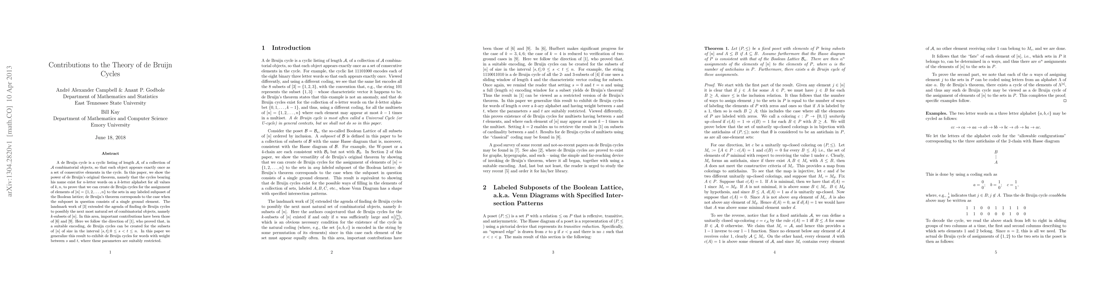 Bruijn's original theorem, namely that the cycles bearing his name exist for