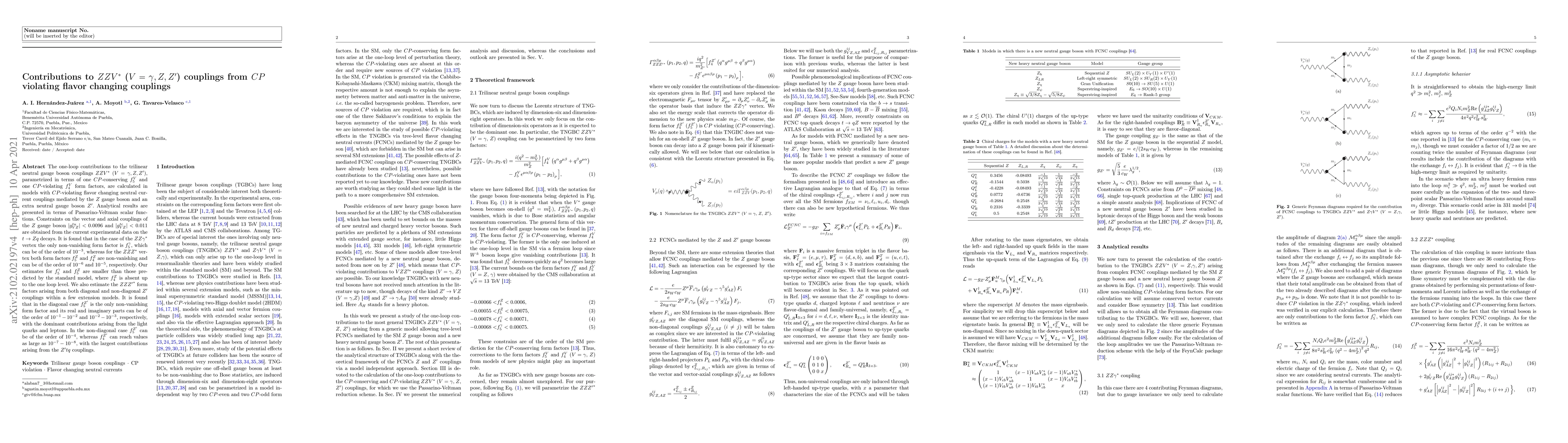 Researchers calculated one-loop contributions to $ZZV^lat$ couplings in models with $CP$-violating flavor changing neutral current couplings, finding form factors that could be significant, but smaller than standard model predictions, with implications for experimental data on decays.