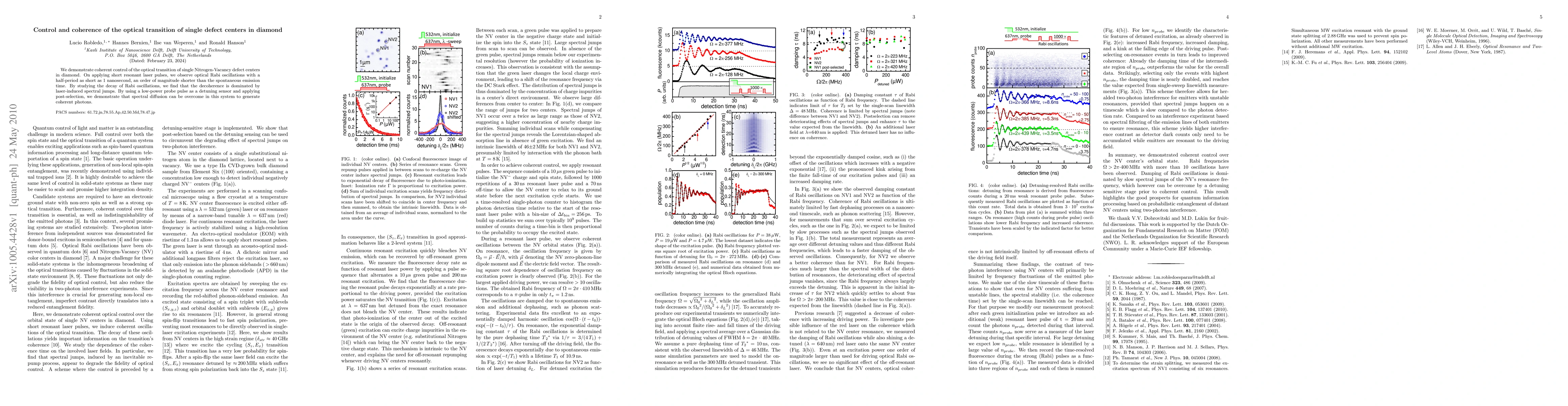 This study demonstrates coherent control of the optical transition in single Nitrogen-Vacancy centers in diamond, showing optical Rabi oscillations as short as 1 nanosecond. It reveals that decoherence is mainly due to laser-induced spectral jumps, but by employing a low-power probe and post-selection, spectral diffusion is mitigated to generate coherent photons.