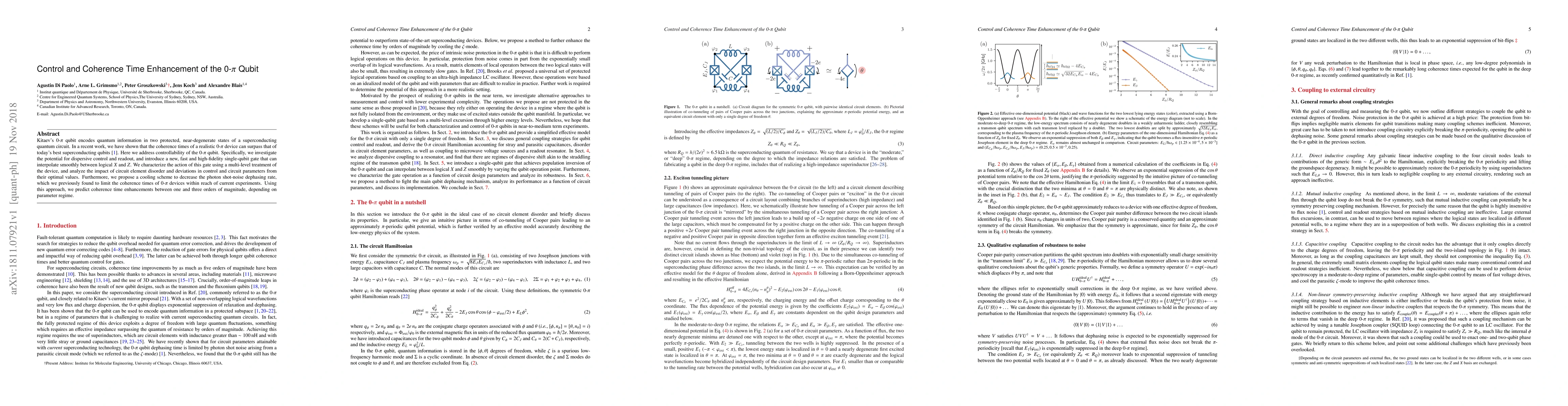 This paper investigates the controllability and coherence time enhancement of Kitaev's 0-$\pi $ qubit, proposing a new high-fidelity single-qubit gate and a cooling scheme to reduce photon shot-noise dephasing, predicting coherence time improvements by one to three orders of magnitude.