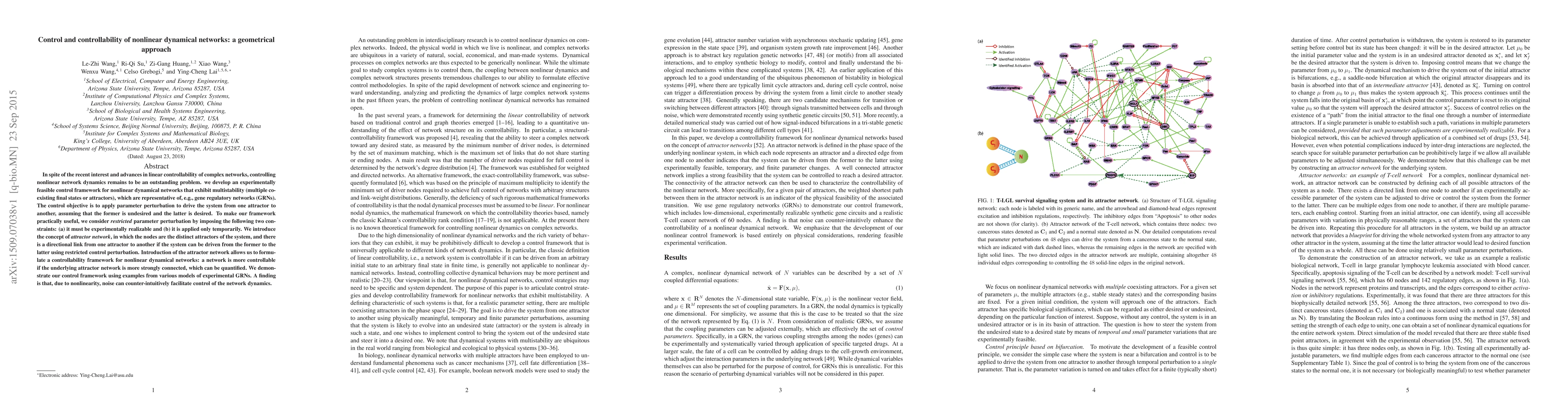 In spite of the recent interest and advances in linear controllability of complex networks, controlling nonlinear network dynamics remains to be an outstanding problem. We develop an experimentally feasible control framework for nonlinear dynamical networks that exhibit multistability (multiple coexisting final states or attractors), which are representative of, e.g., gene regulatory networks (GRNs). The control objective is to apply parameter perturbation to drive the system from one attractor to another, assuming that the former is undesired and the latter is desired. To make our framework practically useful, we consider RESTRICTED parameter perturbation by imposing the following two constraints: (a) it must be experimentally realizable and (b) it is applied only temporarily. We introduce the concept of ATTRACTOR NETWORK, in which the nodes are the distinct attractors of the system, and there is a directional link from one attractor to another if the system can be driven from the former to the latter using restricted control perturbation. Introduction of the attractor network allows us to formulate a controllability framework for nonlinear dynamical networks: a network is more controllable if the underlying attractor network is more strongly connected, which can be quantified. We demonstrate our control framework using examples from various models of experimental GRNs. A finding is that, due to nonlinearity, noise can counter-intuitively facilitate control of the network dynamics.