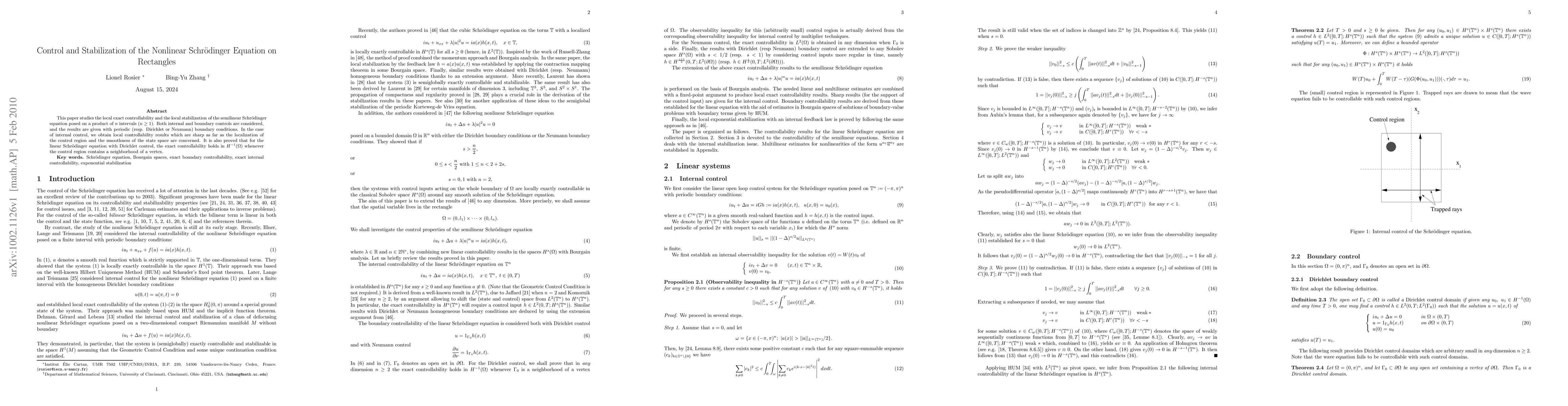 This paper studies the local exact controllability and the local stabilization of the semilinear Schr\"odinger equation posed on a product of $n$ intervals ($n\ge 1$). Both internal and boundary controls are considered, and the results are given with periodic (resp. Dirichlet or Neumann) boundary conditions. In the case of internal control, we obtain local controllability results which are sharp as far as the localization of the control region and the smoothness of the state space are concerned. It is also proved that for the linear Schr\"odinger equation with Dirichlet control, the exact controllability holds in $H^{-1}(\Omega)$ whenever the control region contains a neighborhood of a vertex.