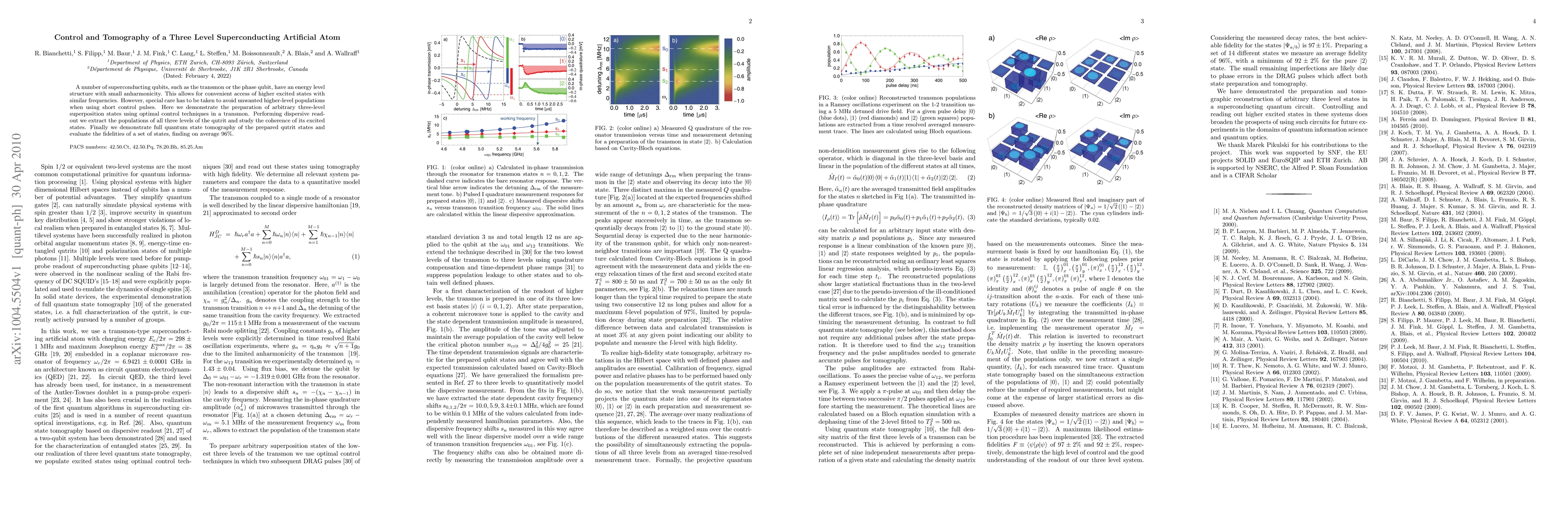 This paper demonstrates optimal control techniques to prepare arbitrary three-level superposition states in a superconducting transmon qubit, performing dispersive read-out to extract populations and coherence of excited states. It also conducts full quantum state tomography, achieving average fidelities of 96%.