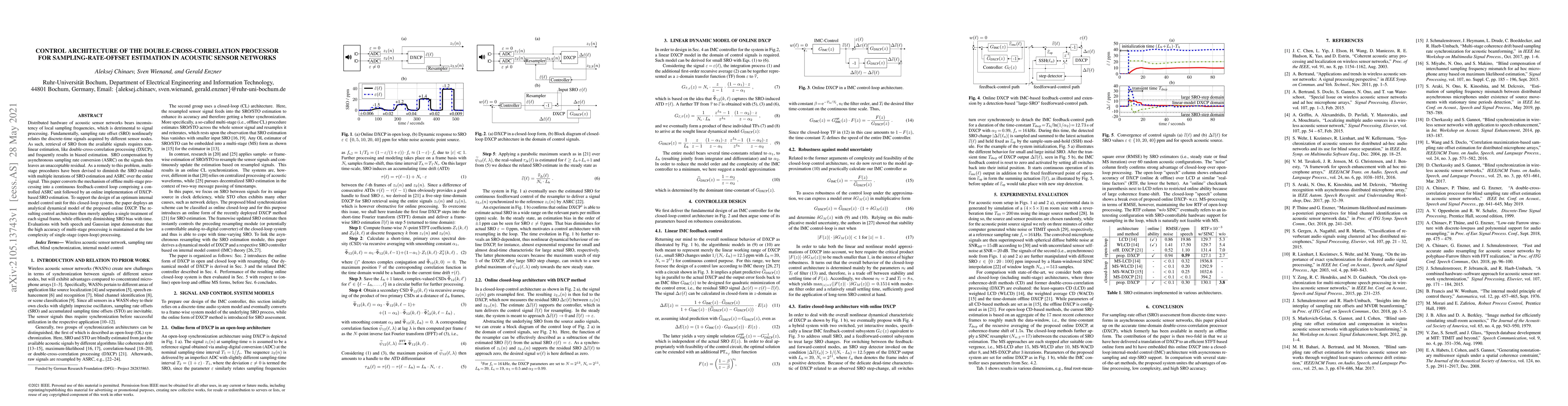 This paper presents a control architecture for a double-cross-correlation processor to estimate and compensate for sampling-rate-offset in acoustic sensor networks, converting multi-stage offline processing into a continuous feedback loop. This method maintains high accuracy while reducing complexity to single-stage processing.