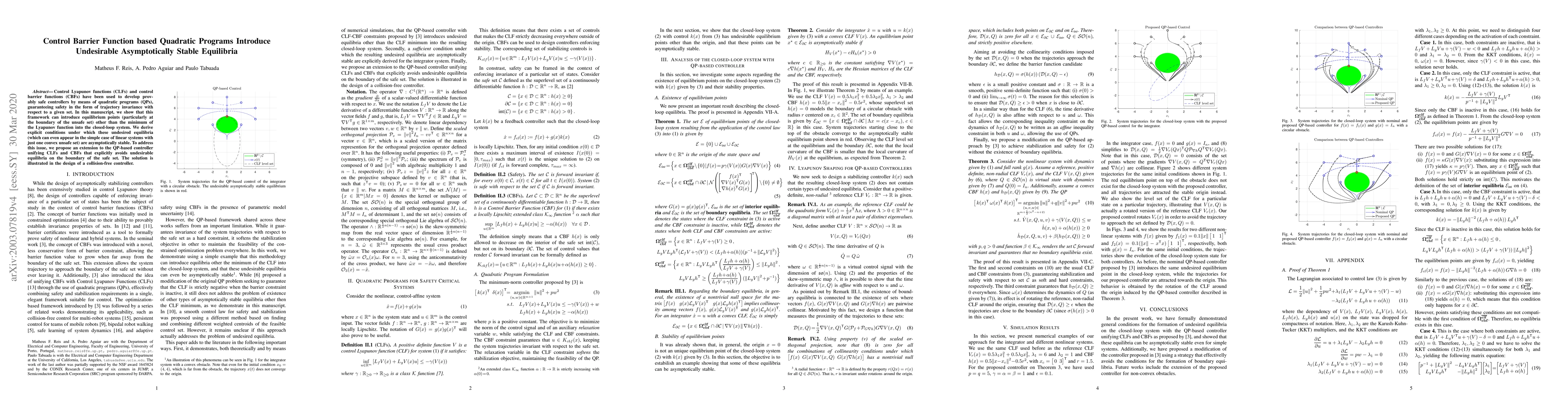 This paper identifies that using control barrier functions within quadratic programs can introduce undesirable asymptotically stable equilibria at the boundary of unsafe sets. It proposes an extension to the QP-based controller to avoid these equilibria, ensuring safer control design.
