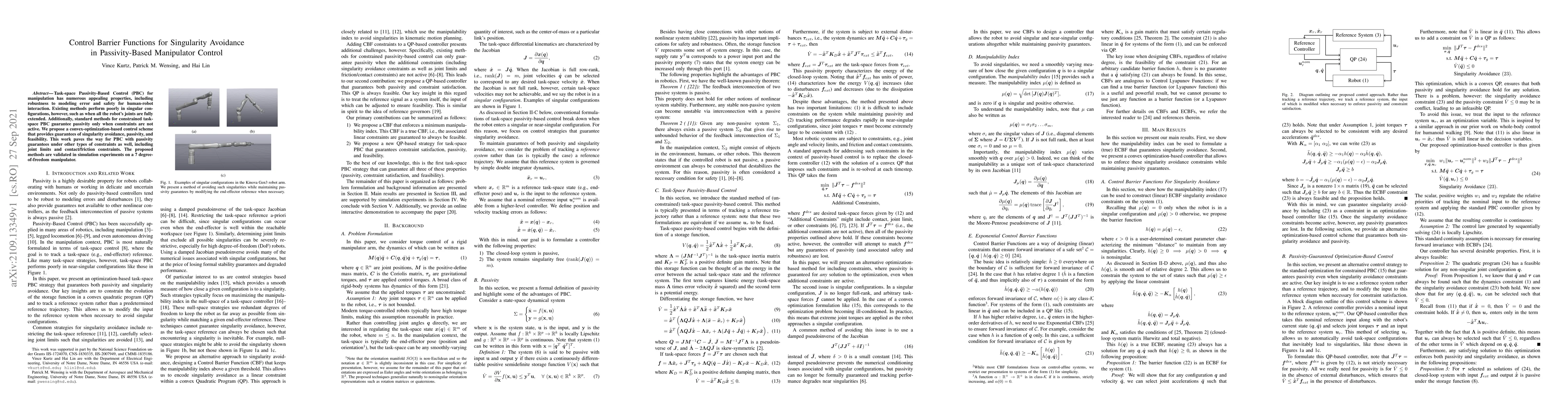 Researchers developed a control scheme for passivity-based manipulation that guarantees singularity avoidance, passivity, and feasibility in constrained task-space control. The method is validated through simulation experiments on a 7-degree-of-freedom manipulator.