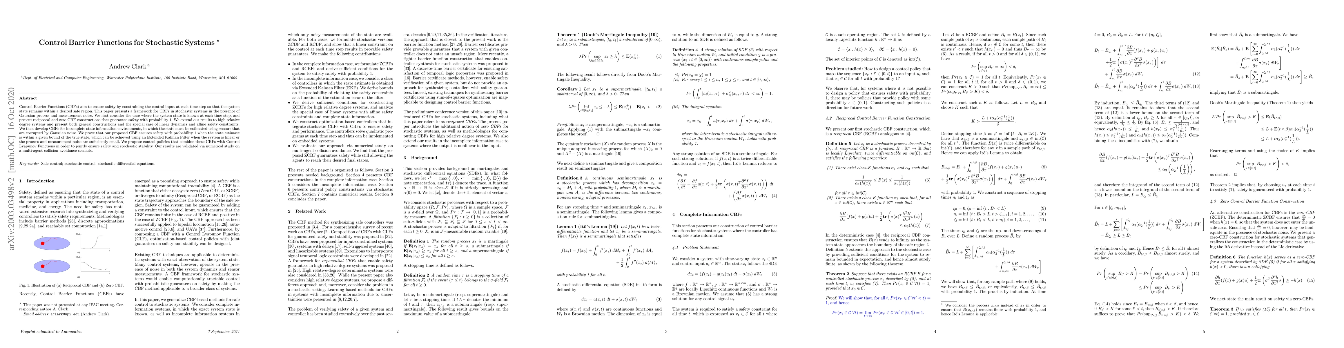 The paper presents a framework for Control Barrier Functions (CBFs) in stochastic systems, addressing both complete and incomplete information scenarios. It develops Reciprocal and Zero CBF constructions for ensuring safety, proving guarantees with probability 1 for complete information and providing stochastic safety guarantees dependent on estimation accuracy for incomplete information.