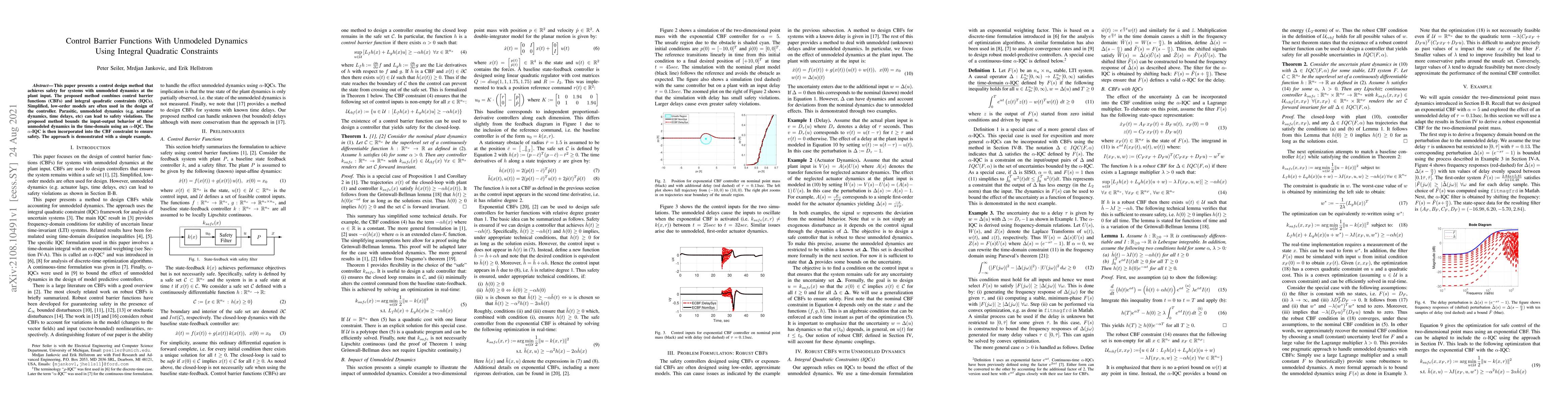 This paper proposes a control design method combining control barrier functions and integral quadratic constraints to ensure safety for systems with unmodeled dynamics at the plant input, using an alpha-IQC to bound the input-output behavior of these dynamics. The method is demonstrated through a simple example.