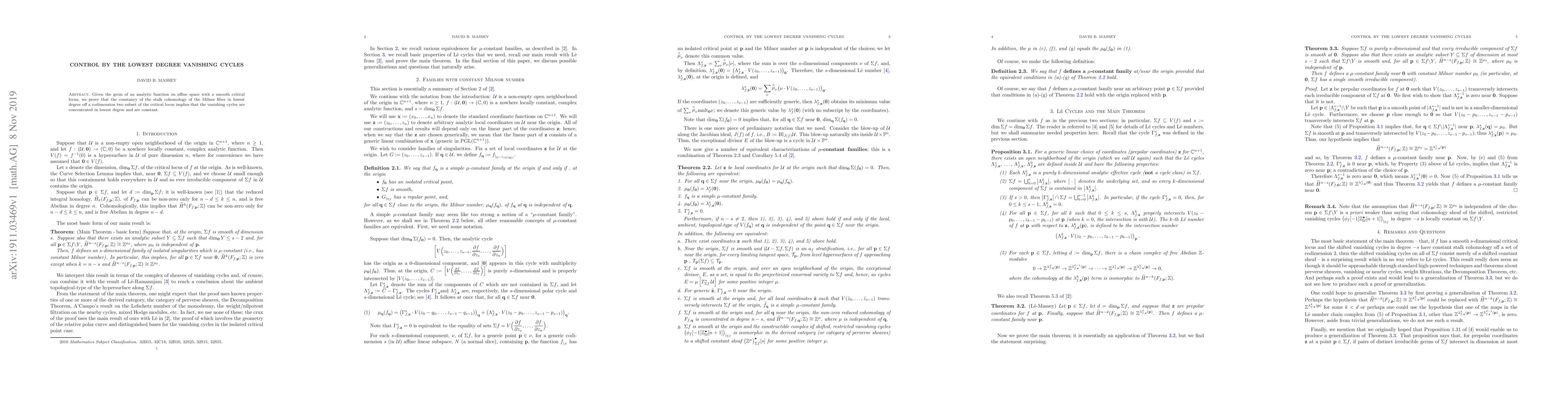 Summary: This paper demonstrates that for an analytic function on affine space, the constancy of the stalk cohomology of the Milnor fiber in the lowest degree, excluding a codimension two subset, ensures that the vanishing cycles are concentrated and constant in that degree.