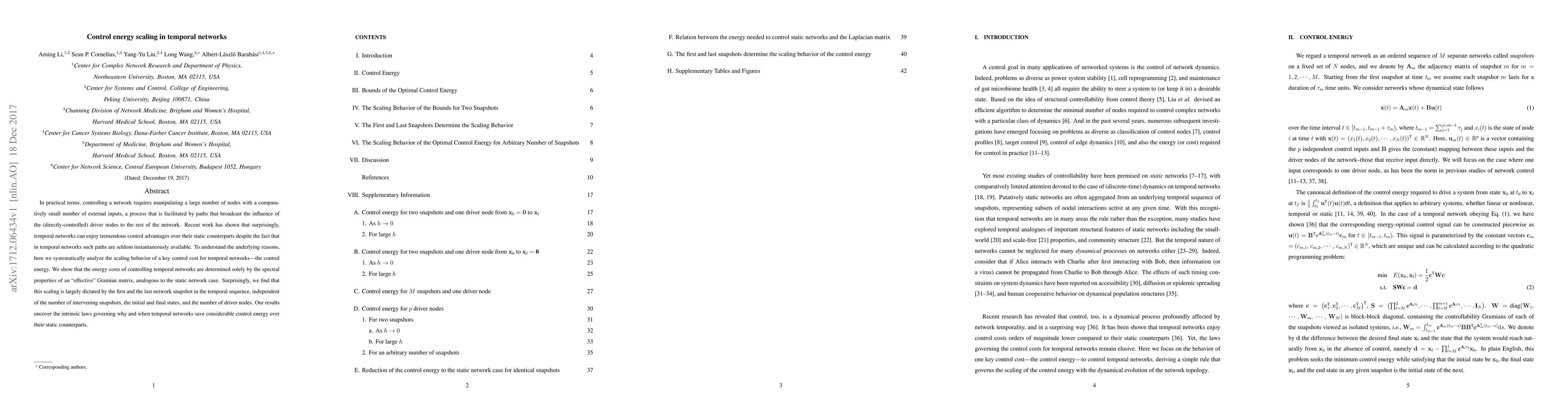 The paper presents a detailed analysis of control energy scaling in temporal networks, identifying that the spectral properties of an effective Gramian matrix govern the energy costs, which is a novel insight into temporal network control.