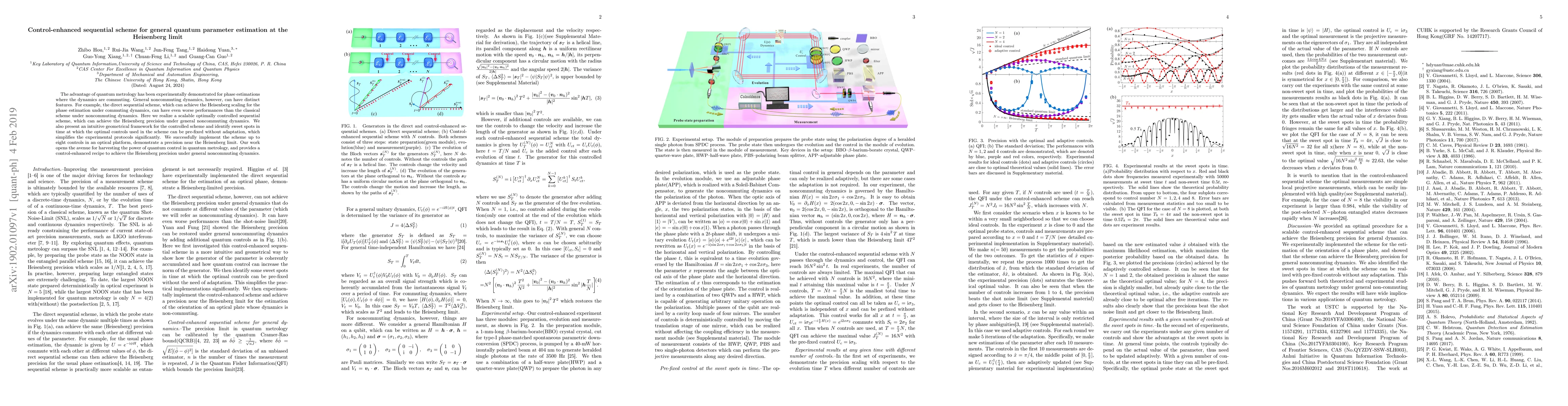 The advantage of quantum metrology has been experimentally demonstrated for phase estimations where the dynamics are commuting. General noncommuting dynamics, however, can have distinct features. For example, the direct sequential scheme, which can achieve the Heisenberg scaling for the phase estimation under commuting dynamics, can have even worse performances than the classical scheme under noncommuting dynamics. Here we realize a scalable optimally controlled sequential scheme, which can achieve the Heisenberg precision under general noncommuting dynamics. We also present an intuitive geometrical framework for the controlled scheme and identify sweet spots in time at which the optimal controls used in the scheme can be pre-fixed without adaptation, which simplifies the experimental protocols significantly. We successfully implement the scheme up to eight controls in an optical platform, demonstrate a precision near the Heisenberg limit. Our work opens the avenue for harvesting the power of quantum control in quantum metrology, and provides a control-enhanced recipe to achieve the Heisenberg precision under general noncommuting dynamics.