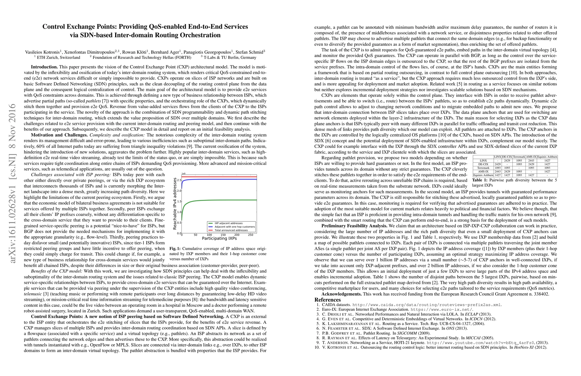 This paper introduces the Control Exchange Point (CXP) architectural model to address the inflexibility of current inter-domain routing systems, aiming to provide QoS-enabled end-to-end services across domains. The CXP leverages SDN principles and dynamic path stitching to enable new business relationships between ISPs and clients, enhancing inter-domain routing orchestration.