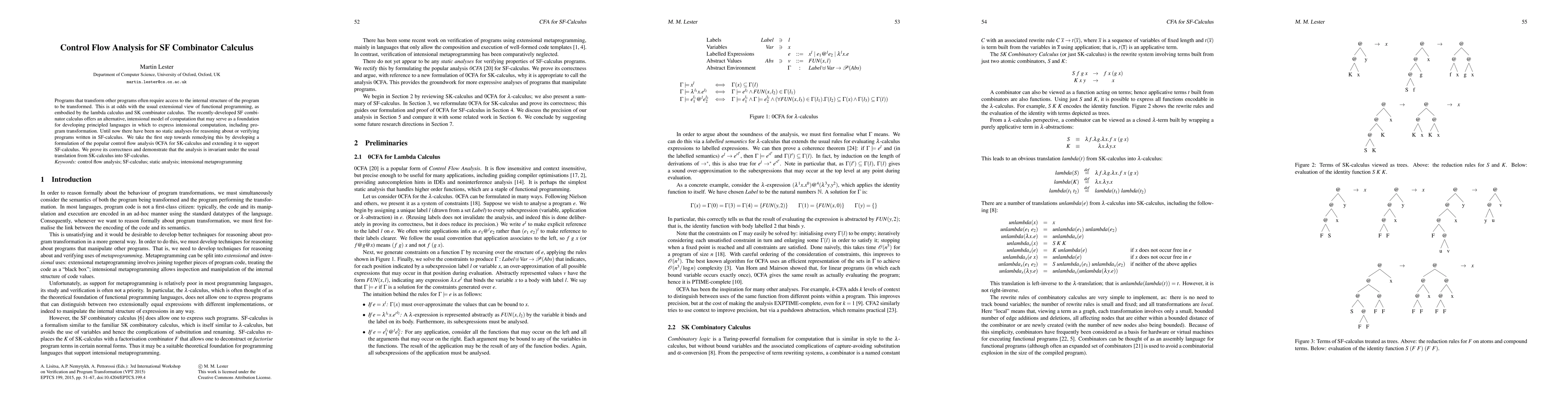 This paper develops a control flow analysis for SF combinator calculus, extending existing SK-calculus analysis to support intensional computation, providing a foundation for principled languages.