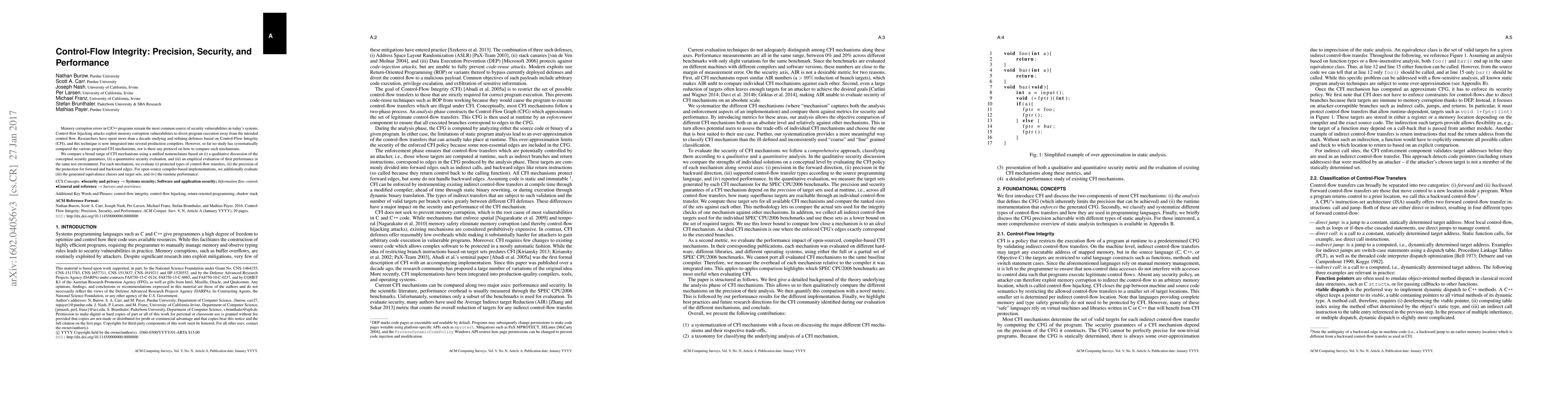 This paper systematically compares various Control-Flow Integrity (CFI) mechanisms, evaluating their security guarantees, precision, and performance. It provides a unified framework for assessing different CFI implementations based on their protection of control-flow transfers, precision, and runtime impact.