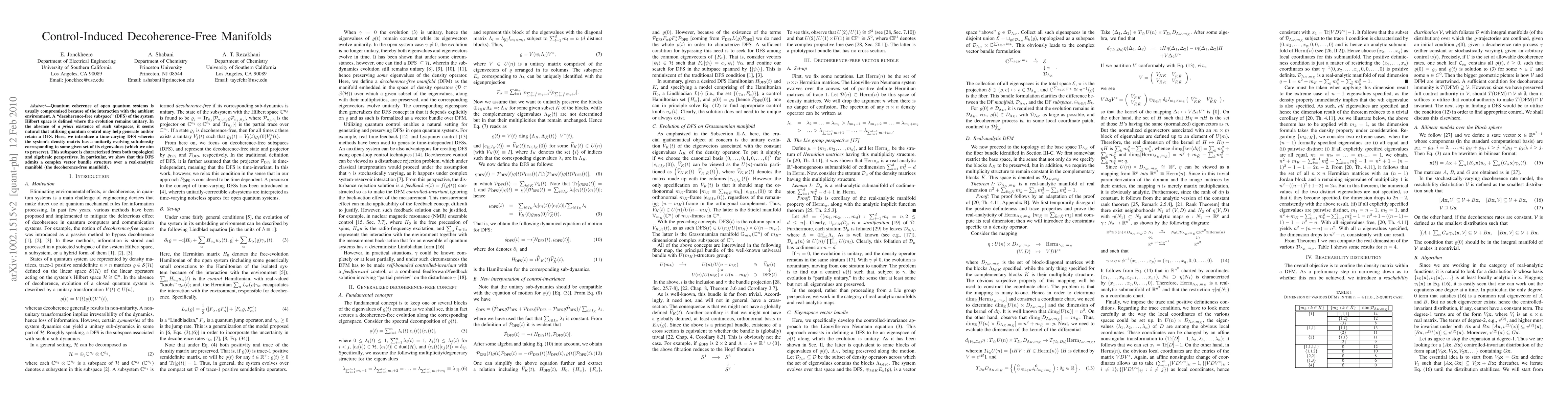 Quantum coherence of open quantum systems is usually compromised because of the interaction with the ambient environment. A "decoherence-free subspace" (DFS) of the system Hilbert space is defined where the evolution remains unitary. In the absence of a priori existence of such subspaces, it seems natural that utilizing quantum control may help generate and/or retain a DFS. Here, we introduce a time-varying DFS wherein the system's density matrix has a unitarily evolving sub-density corresponding to some given set of its eigenvalues (which we aim to preserve). This subspace is characterized from both topological and algebraic perspectives. In particular, we show that this DFS admits a complex vector bundle structure over a real-analytic manifold (the decoherence-free manifold).