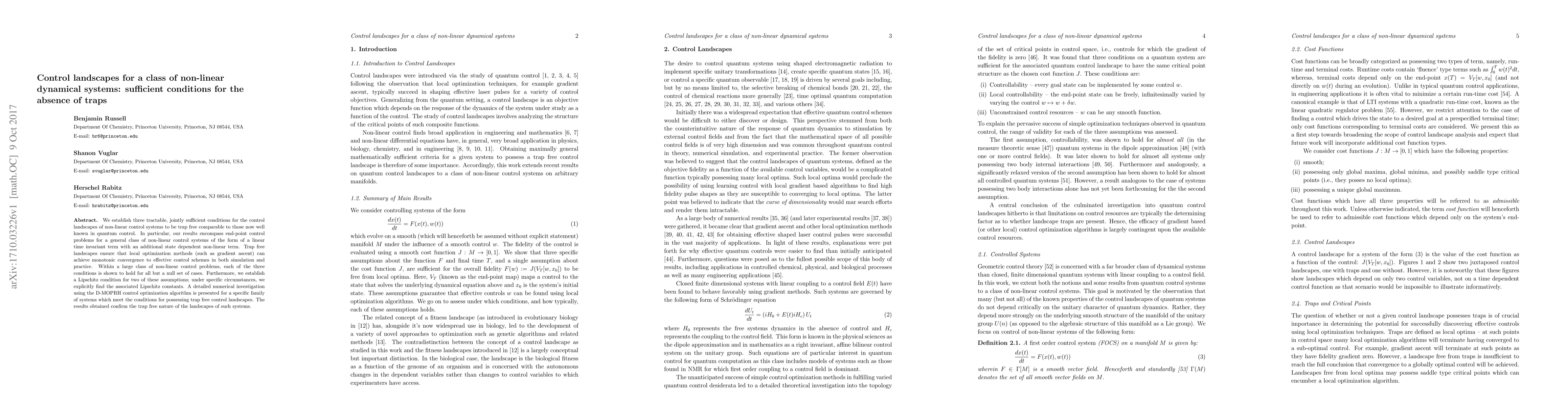 This paper establishes sufficient conditions for non-linear control systems to have trap-free control landscapes, ensuring monotonic convergence of local optimization methods. It provides three conditions, proves their general applicability, and conducts numerical investigations confirming their effectiveness.