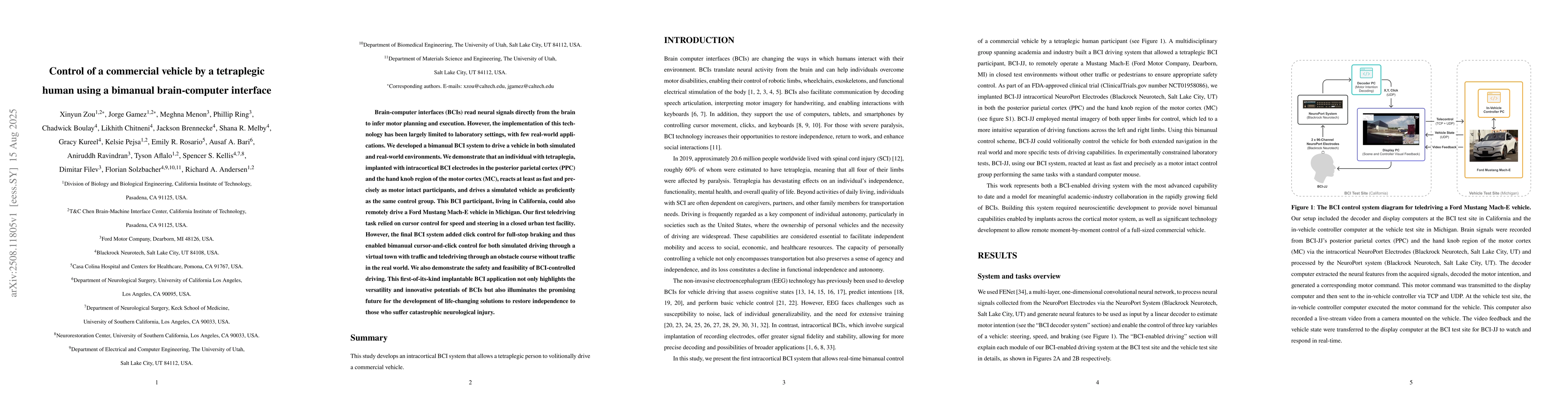 This research highlights the potential of BCIs to restore independence for individuals with catastrophic neurological injuries, demonstrating a first-of-its-kind implantable BCI application for controlling a commercial vehicle.