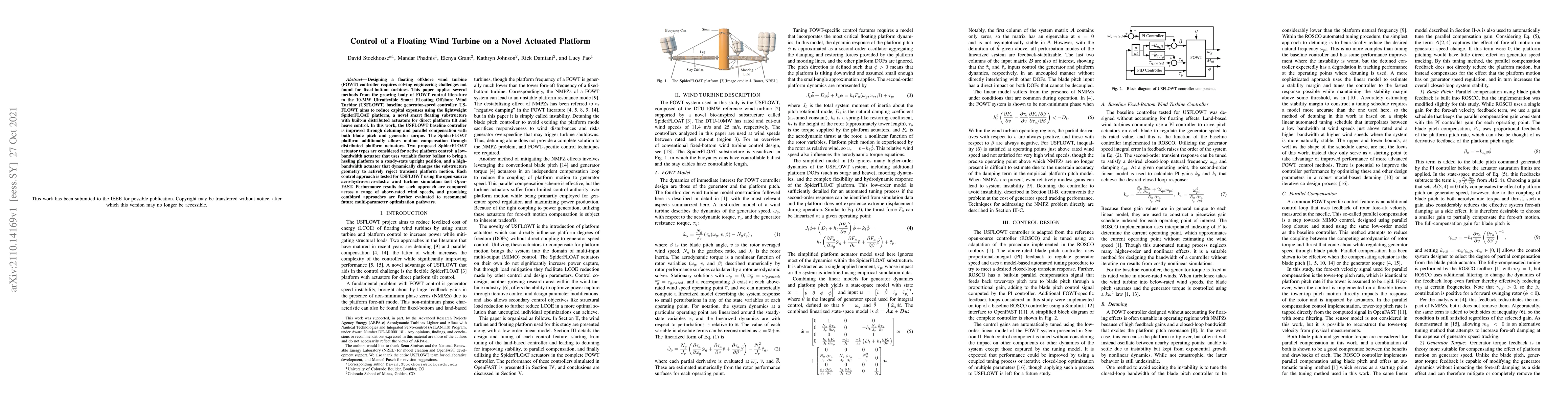 This paper enhances the control of a floating offshore wind turbine (FOWT) using the USFLOWT baseline controller and a novel SpiderFLOAT platform with distributed actuators for tilt and heave control. It evaluates two actuator types for active platform motion compensation and tests their performance using the OpenFAST simulation tool, aiming to reduce capital expenses and improve turbine efficiency.