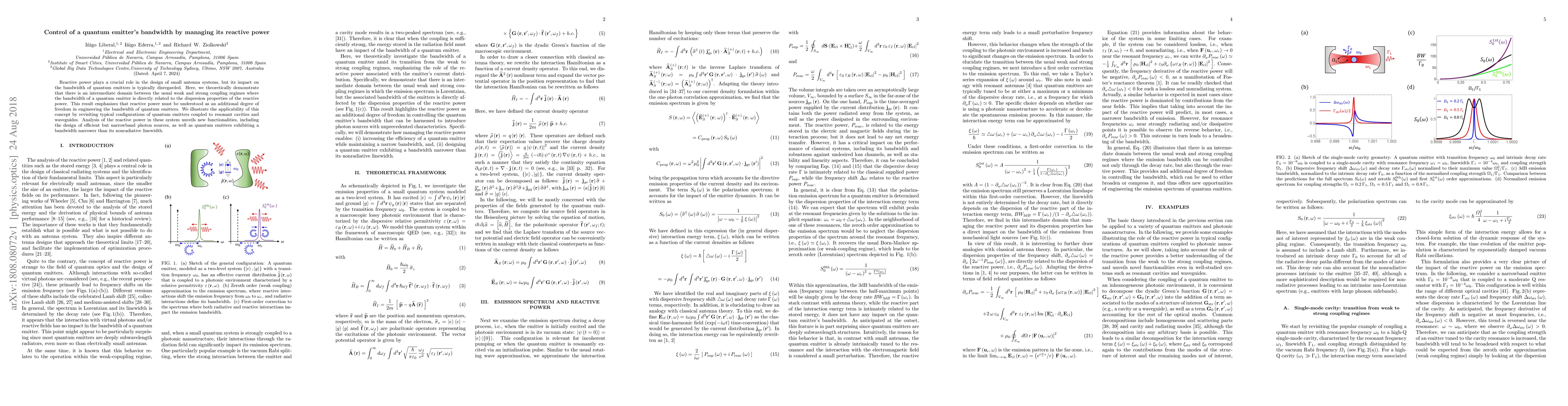 This paper demonstrates that managing the reactive power of a quantum emitter can control its bandwidth, revealing a new intermediate coupling regime. This insight provides a new degree of freedom for engineering quantum emitters, leading to efficient, narrowband photon sources and emitters with narrower bandwidths than their nonradiative linewidths.