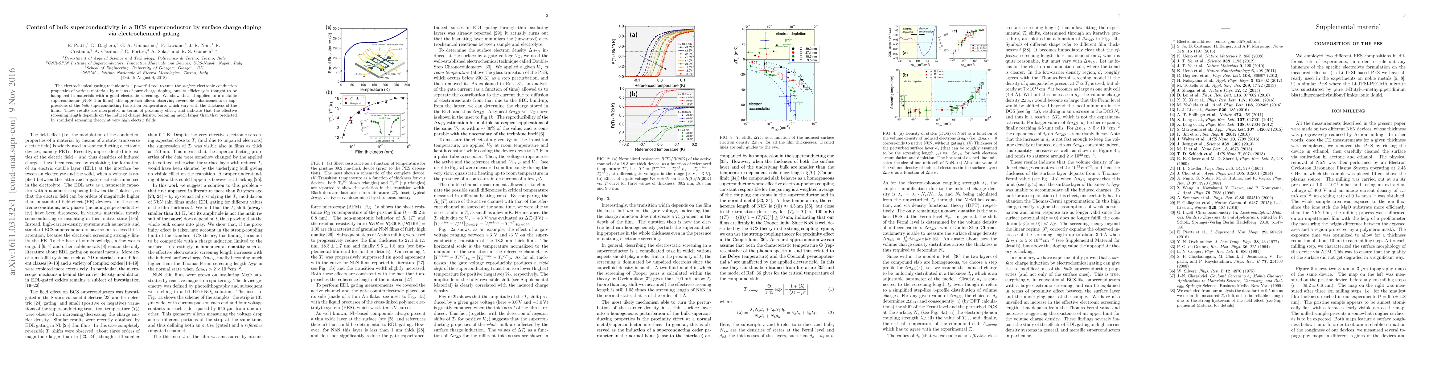 This study demonstrates that electrochemical gating can reversibly modify the bulk superconductivity of NbN thin films by surface charge doping, despite strong electronic screening. The observed changes in the superconducting transition temperature correlate with film thickness, suggesting an enhanced screening length under high electric fields.