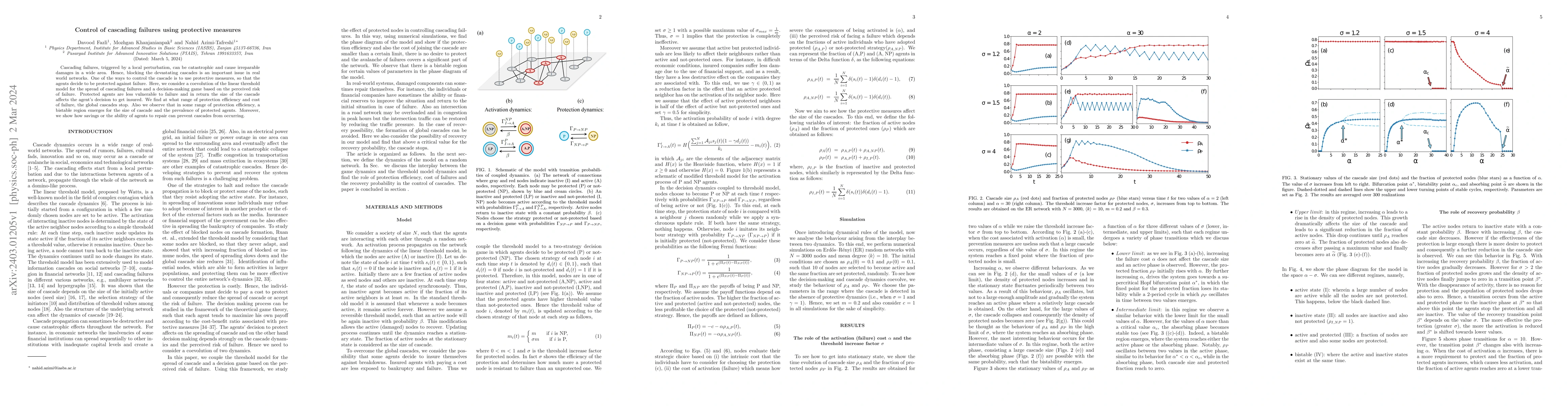 This paper investigates methods to halt cascading failures in networks through protective measures. It models the spread of failures using the linear threshold model and examines a decision-making game where agents choose protection based on perceived risk, finding conditions under which global cascades can be prevented, and identifying a bistable region affecting cascade size and protected agent prevalence.