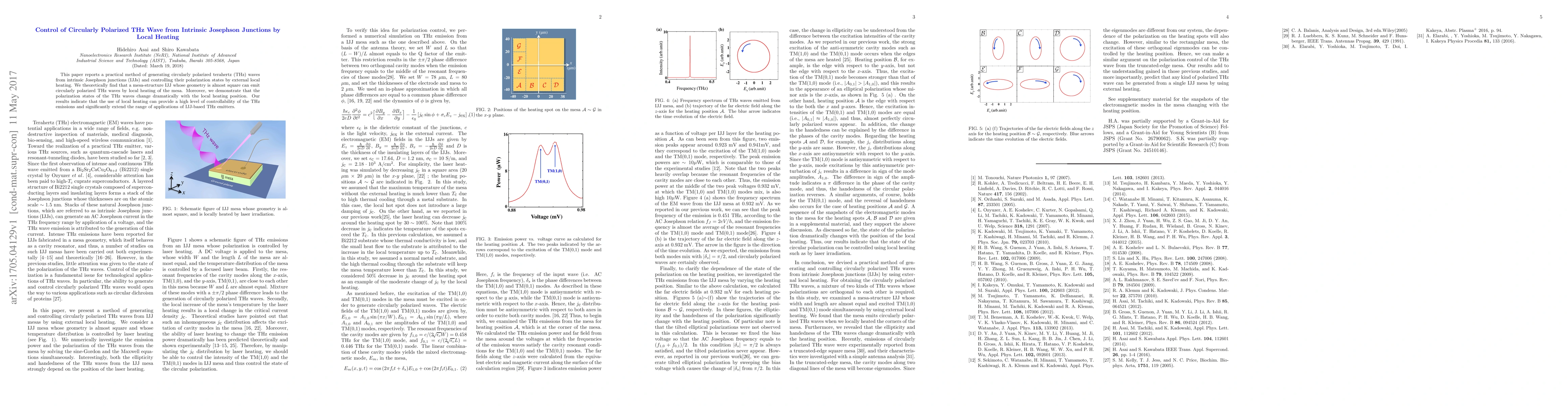 The paper presents a theoretical framework for controlling the polarization states of THz waves emitted from IJJs through local heating, utilizing cavity resonant conditions and orthogonal THz wave excitation.
