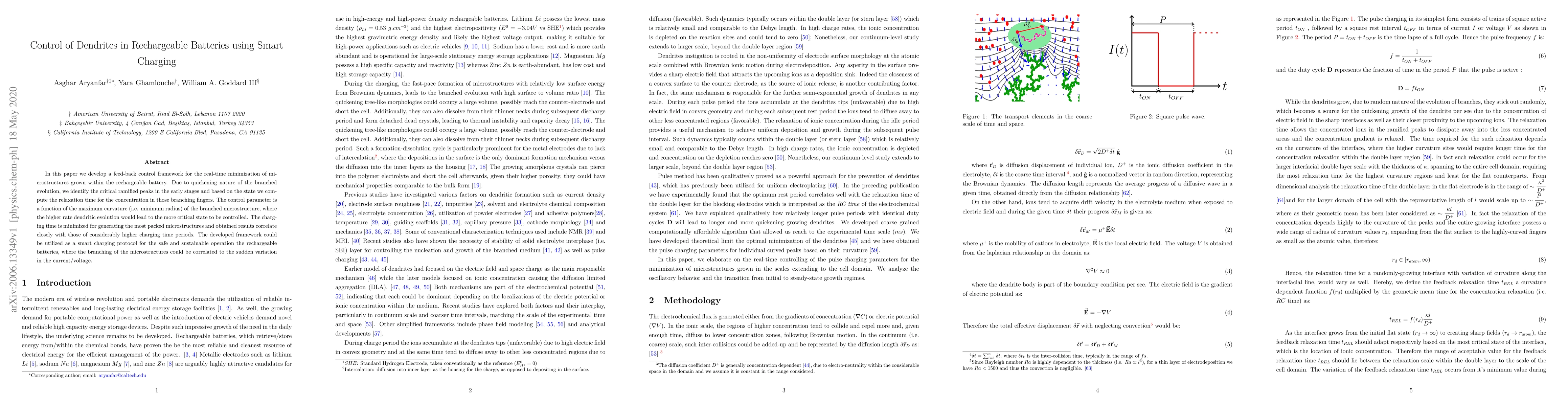 In this paper we develop a feed-back control framework for the real-time minimization of microstructures grown within the rechargeable battery. Due to quickening nature of the branched evolution, we identify the critical ramified peaks in the early stages and based on the state we compute the relaxation time for the concentration in those branching fingers. The control parameter is a function of the maximum curvature (i.e. minimum radius) of the branched microstructure, where the higher rate dendritic evolution would lead to the more critical state to be controlled. The charging time is minimized for generating the most packed microstructures and obtained results correlate closely with those of considerably higher charging time periods. The developed framework could be utilized as a smart charging protocol for the safe and sustainable operation the rechargeable batteries, where the branching of the microstructures could be correlated to the sudden variation in the current/voltage.