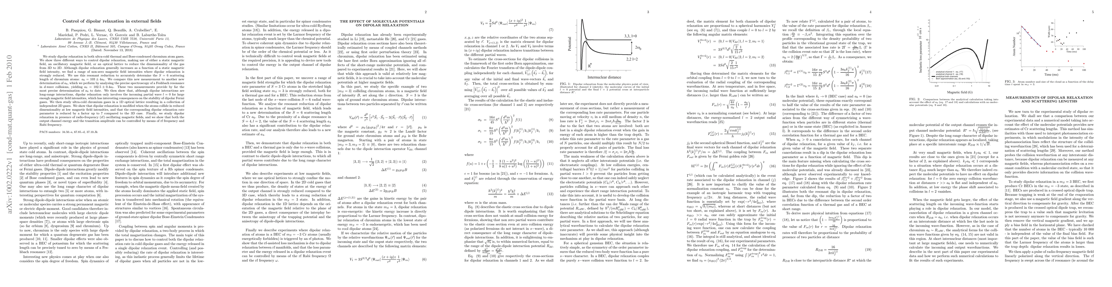 This paper investigates methods to control dipolar relaxation in chromium atom gases using static, oscillatory magnetic fields, and optical lattices. It reports precise determinations of the S=6 scattering length and demonstrates that dipolar relaxation is significantly reduced in lower dimensions and specific magnetic field ranges, with implications for the stability of dipolar Fermi gases.