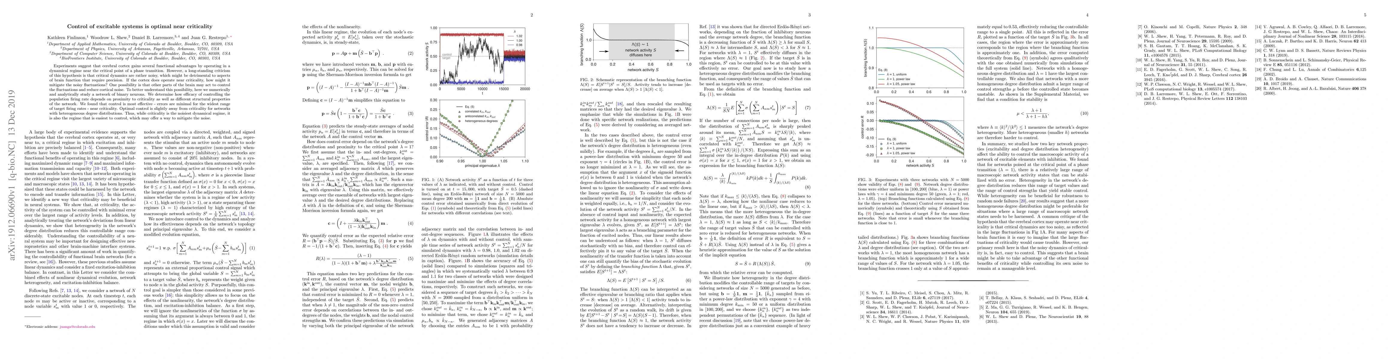 This paper investigates how excitable systems, like the cerebral cortex, can optimally control their dynamics near criticality despite the inherent noise. It finds that control is most effective near criticality, suggesting a potential mechanism for mitigating noise through control mechanisms in the brain.