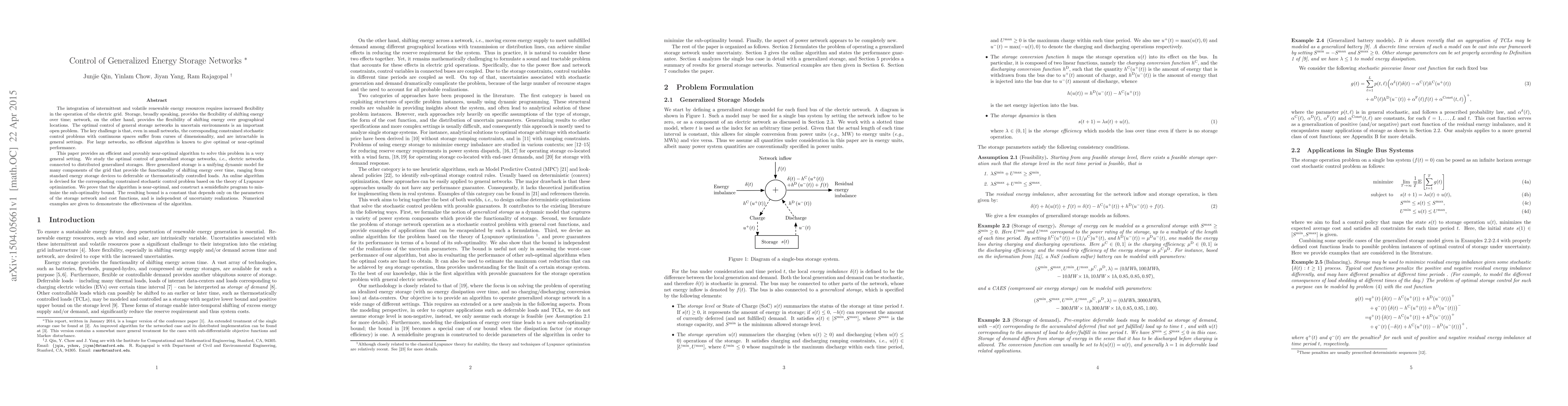 The integration of intermittent and volatile renewable energy resources requires increased flexibility in the operation of the electric grid. Storage, broadly speaking, provides the flexibility of shifting energy over time; network, on the other hand, provides the flexibility of shifting energy over geographical locations. The optimal control of general storage networks in uncertain environments is an important open problem. The key challenge is that, even in small networks, the corresponding constrained stochastic control problems with continuous spaces suffer from curses of dimensionality, and are intractable in general settings. For large networks, no efficient algorithm is known to give optimal or near-optimal performance. This paper provides an efficient and provably near-optimal algorithm to solve this problem in a very general setting. We study the optimal control of generalized storage networks, i.e., electric networks connected to distributed generalized storages. Here generalized storage is a unifying dynamic model for many components of the grid that provide the functionality of shifting energy over time, ranging from standard energy storage devices to deferrable or thermostatically controlled loads. An online algorithm is devised for the corresponding constrained stochastic control problem based on the theory of Lyapunov optimization. We prove that the algorithm is near-optimal, and construct a semidefinite program to min- imize the sub-optimality bound. The resulting bound is a constant that depends only on the parameters of the storage network and cost functions, and is independent of uncertainty realizations. Numerical examples are given to demonstrate the effectiveness of the algorithm.
