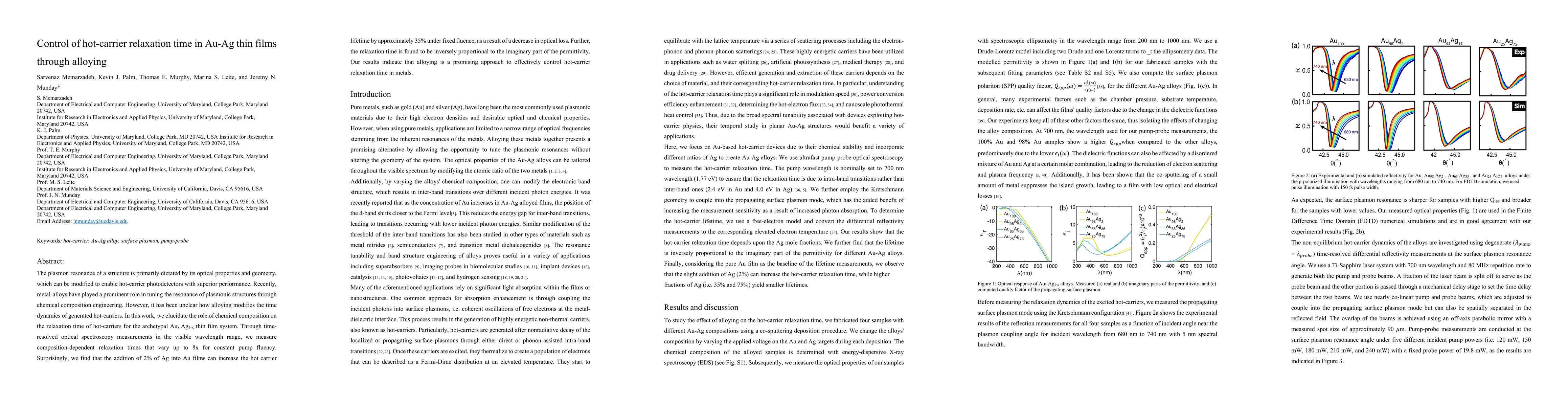 This study investigates how alloying Au with Ag influences the relaxation time of hot-carriers in thin films, revealing a significant increase in lifetime by up to 35% with just 2% Ag addition, due to reduced optical loss. The findings suggest alloying as a viable method to control hot-carrier dynamics in plasmonic structures.