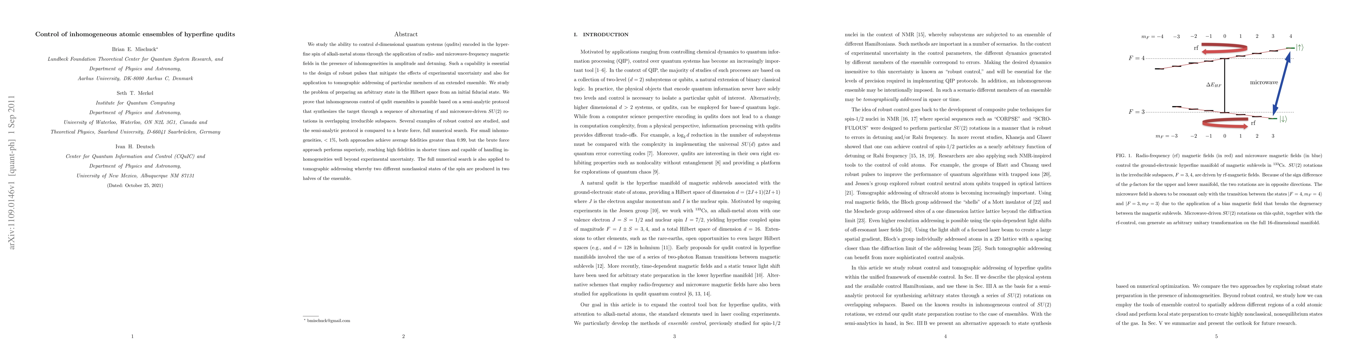 This paper explores the control of d-dimensional quantum systems (qudits) in alkali-metal atoms' hyperfine spin using radio- and microwave-frequency magnetic fields, addressing inhomogeneities. It proposes a semi-analytic protocol for robust state preparation, achieving high fidelities in small inhomogeneities, and compares it to a brute force numerical method.