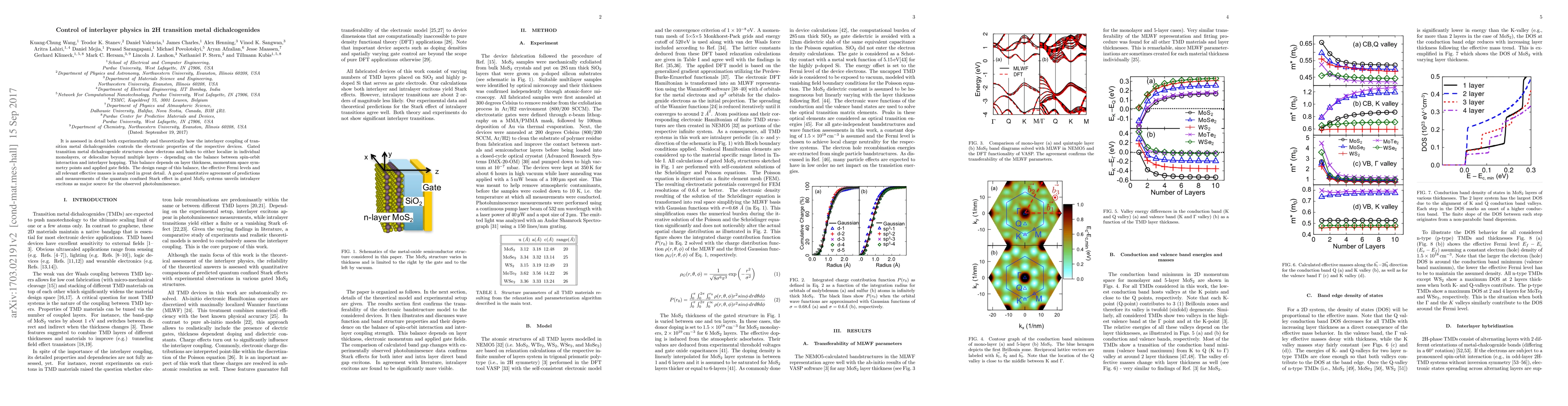 It is assessed in detail both experimentally and theoretically how the interlayer coupling of transition metal dichalcogenides controls the electronic properties of the respective devices. Gated transition metal dichalcogenide structures show electrons and holes to either localize in individual monolayers, or delocalize beyond multiple layers - depending on the balance between spin-orbit inter- action and interlayer hopping. This balance depends on layer thickness, momentum space symmetry points and applied gate fields. A good quantitative agreement of predictions and measurements of the quantum confined Stark effect in gated MoS2 systems unveils intralayer excitons as major source for the observed photoluminesence.