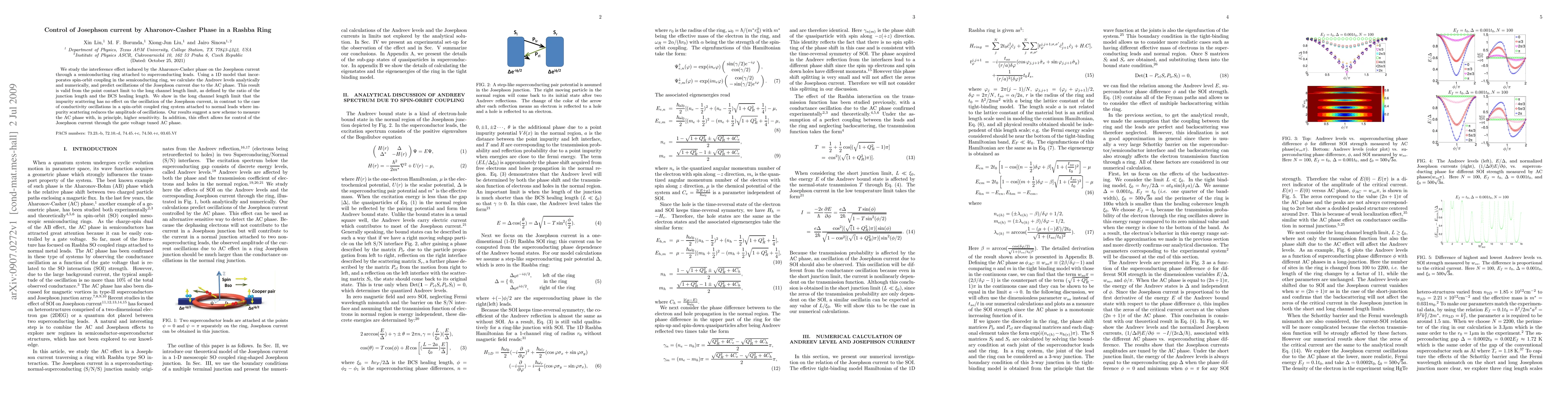 This paper investigates how the Aharonov-Casher phase influences Josephson current in a semiconducting ring with spin-orbit coupling connected to superconducting leads, predicting oscillations in the current due to the AC phase. The study finds that impurity scattering does not affect these oscillations, suggesting a method for sensitive AC phase measurement and control of Josephson current via gate voltage.