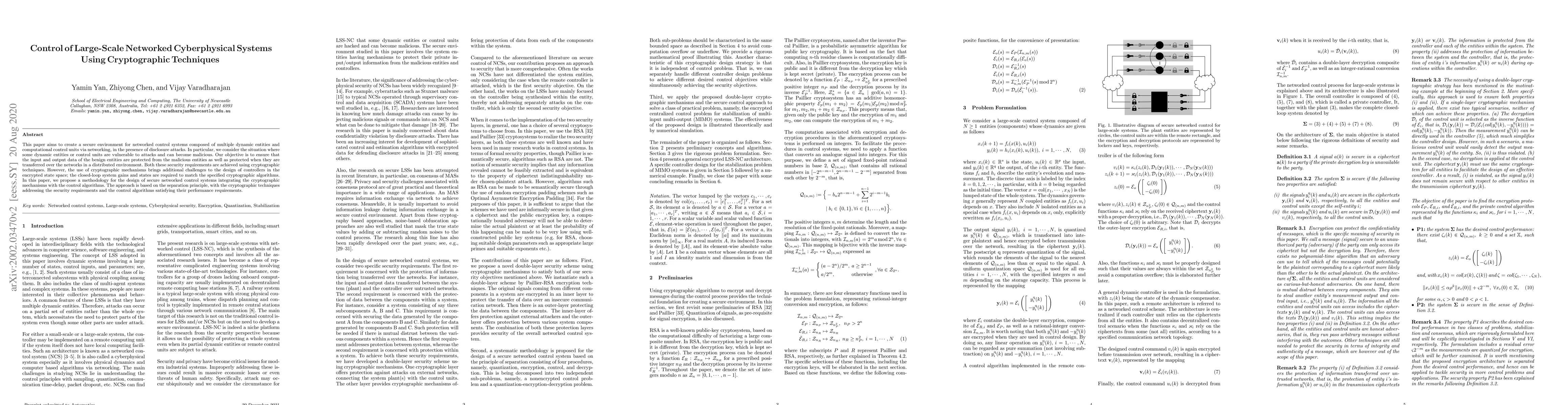 This paper aims to create a secure environment for networked control systems composed of multiple dynamic entities and computational control units via networking, in the presence of disclosure attacks. In particular, we consider the situation where some dynamic entities or control units are vulnerable to attacks and can become malicious. Our objective is to ensure that the input and output data of the benign entities are protected from the malicious entities as well as protected when they are transferred over the networks in a distributed environment. Both these security requirements are achieved using cryptographic techniques. However, the use of cryptographic mechanisms brings additional challenges to the design of controllers in the encrypted state space; the closed-loop system gains and states are required to match the specified cryptographic algorithms. In this paper, we propose a methodology for the design of secure networked control systems integrating the cryptographic mechanisms with the control algorithms. The approach is based on the separation principle, with the cryptographic techniques addressing the security requirements and the control algorithms satisfying their performance requirements.