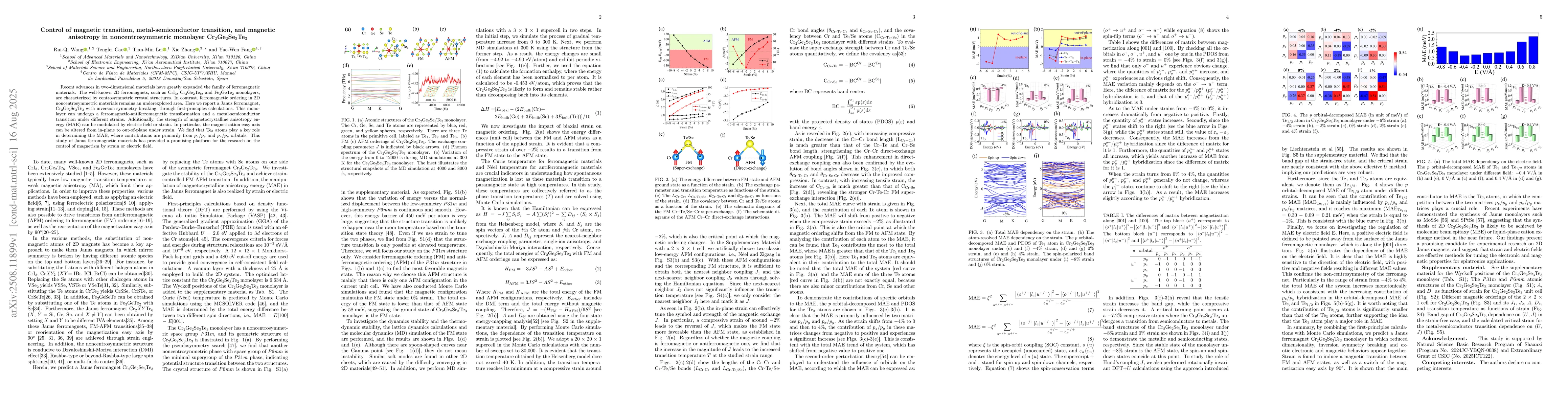 Recent advances in two-dimensional materials have greatly expanded the family of ferromagnetic materials. The well-known 2D ferromagnets, such as CrI$_3$, Cr$_2$Ge$_2$Te$_6$, and Fe$_3$GeTe$_2$ monolayers, are characterized by centrosymmetric crystal structures. In contrast, ferromagnetic ordering in 2D noncentrosymmetric materials remains an underexplored area. Here we report a Janus ferromagnet, Cr$_2$Ge$_2$Se$_3$Te$_3$ with inversion symmetry breaking, through first-principles calculations. This monolayer can undergo a ferromagnetic-antiferromagnetic transformation and a metal-semiconductor transition under different strains. Additionally, the strength of magnetocrystalline anisotropy energy (MAE) can be modulated by electric field or strain. In particular, the magnetization easy axis can be altered from in-plane to out-of-plane under strain. We find that Te$_3$ atoms play a key role in determining the MAE, where contributions are primarily from $p_z / p_y$ and $p_x / p_y$ orbitals. This study of Janus ferromagnetic materials has provided a promising platform for the research on the control of magnetism by strain or electric field.