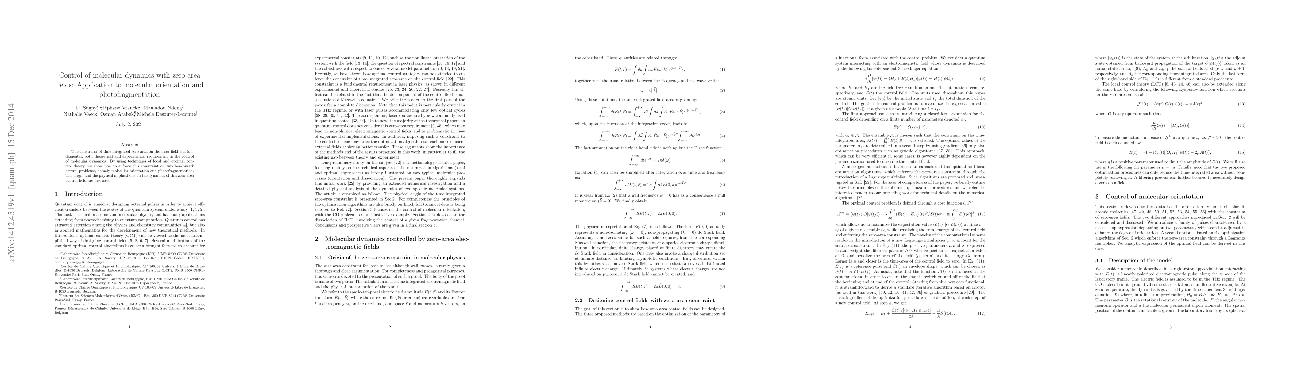 This paper explores the use of zero-area fields to control molecular dynamics through optimal control theory, demonstrating its application in molecular orientation and photofragmentation. The study discusses the theoretical and experimental implications of enforcing zero-area constraints on laser fields.