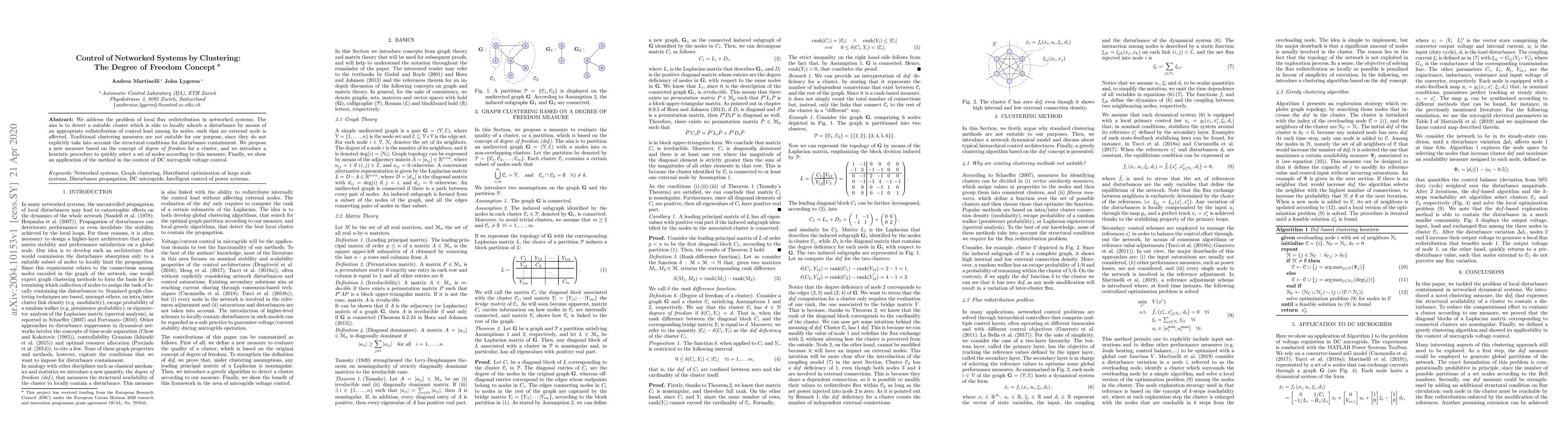 We address the problem of local flux redistribution in networked systems. The aim is to detect a suitable cluster which is able to locally adsorb a disturbance by means of an appropriate redistribution of control load among its nodes, such that no external node is affected. Traditional clustering measures are not suitable for our purpose, since they do not explicitly take into account the structural conditions for disturbance containment. We propose a new measure based on the concept of degree of freedom for a cluster, and we introduce a heuristic procedure to quickly select a set of nodes according to this measure. Finally, we show an application of the method in the context of DC microgrids voltage control.