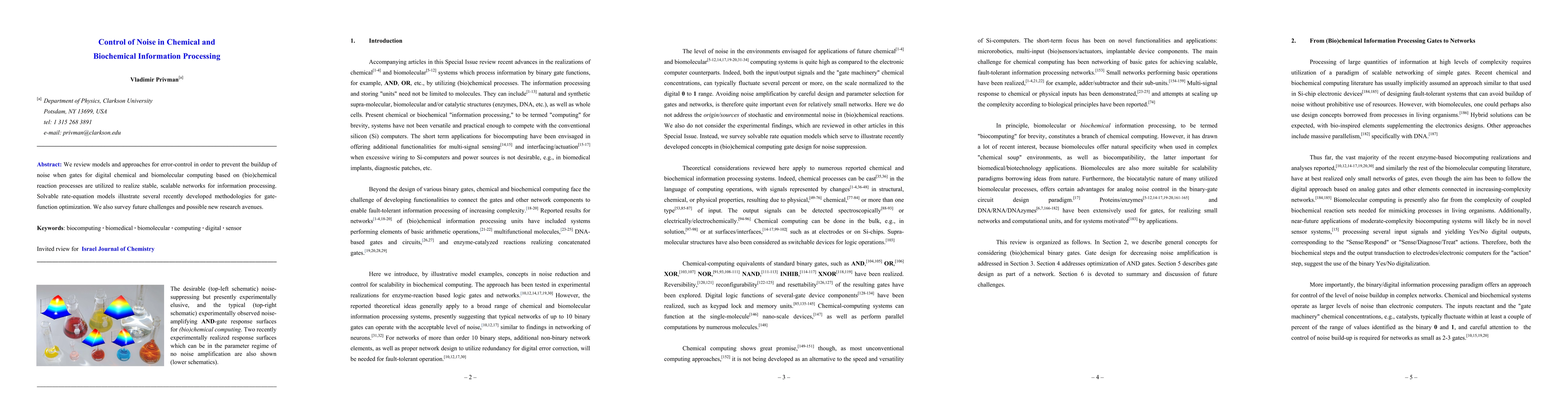 We review models and approaches for error-control in order to prevent the buildup of noise when gates for digital chemical and biomolecular computing based on (bio)chemical reaction processes are utilized to realize stable, scalable networks for information processing. Solvable rate-equation models illustrate several recently developed methodologies for gate-function optimization. We also survey future challenges and possible new research avenues.