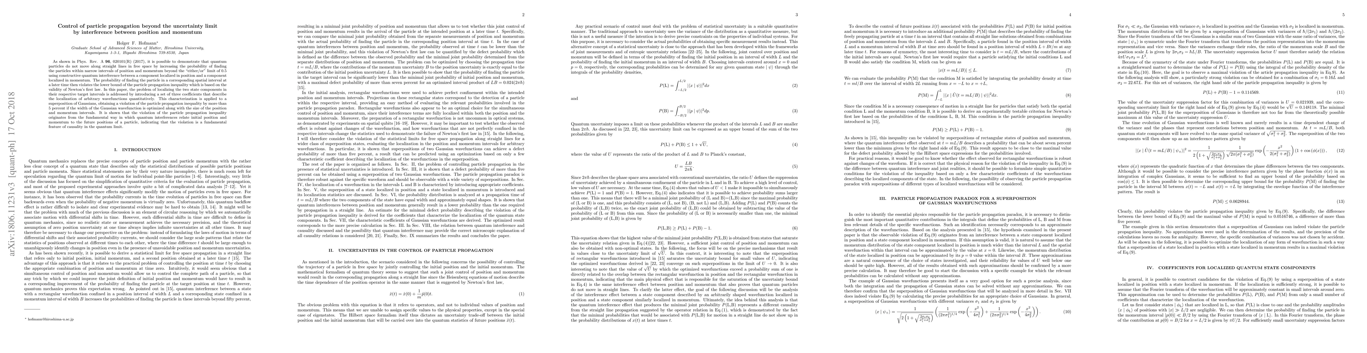 As shown in Phys. Rev. A 96, 020101(R) (2017), it is possible to demonstrate that quantum particles do not move along straight lines in free space by increasing the probability of finding the particles within narrow intervals of position and momentum beyond the "either/or" limit of 0.5 using constructive quantum interference between a component localized in position and a component localized in momentum. The probability of finding the particle in a corresponding spatial interval at a later time then violates the lower bound of the particle propagation inequality which is based on the validity of Newton's first law. In this paper, the problem of localizing the two state components in their respective target intervals is addressed by introducing a set of three coefficients that describe the localization of arbitrary wavefunctions quantitatively. This characterization is applied to a superposition of Gaussians, obtaining a violation of the particle propagation inequality by more than 5 percent if the width of the Gaussian wavefunction is optimized along with the size of the position and momentum intervals. It is shown that the violation of the particle propagation inequality originates from the fundamental way in which quantum interferences relate initial position and momentum to the future positions of a particle, indicating that the violation is a fundamental feature of causality in the quantum limit.