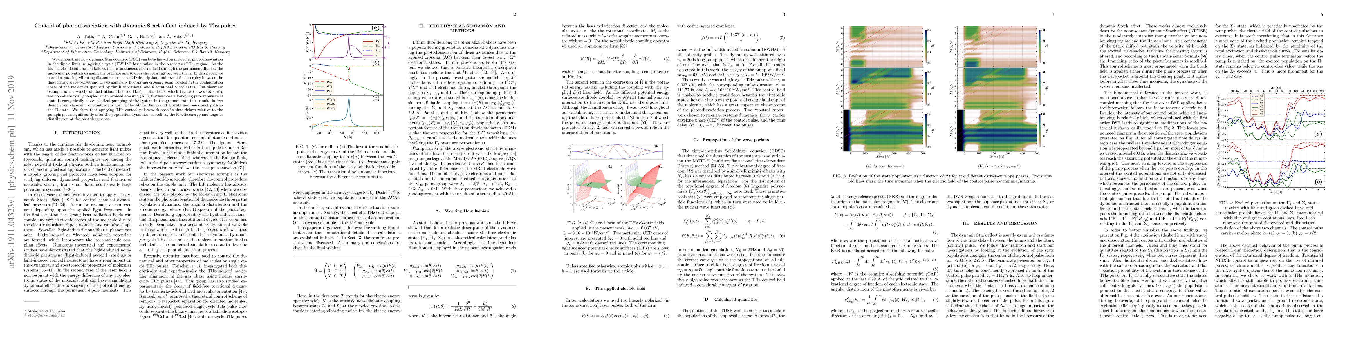 We demonstrate how dynamic Stark control (DSC) can be achieved on molecular photodissociation in the dipole limit, using single-cycle (FWHM) laser pulses in the terahertz (THz) regime. As the laser-molecule interaction follows the instantaneous electric field through the permanent dipoles, the molecular potentials dynamically oscillate and so does the crossings between them. In this paper, we consider rotating-vibrating diatomic molecules (2D description) and reveal the interplay between the dissociating wave packet and the dynamically fluctuating crossing seam located in the configuration space of the molecules spanned by the R vibrational and $\theta$ rotational coordinates. Our showcase example is the widely studied lithium-fluoride (LiF) molecule for which the two lowest $\Sigma$ states are nonadiabatically coupled at an avoided crossing (AC), furthermore a low-lying pure repulsive $\Pi$ state is energetically close. Optical pumping of the system in the ground state thus results in two dissociation channels: one indirect route via the AC in the ground $\Sigma$ state and one direct path in the $\Pi$ state. We show that applying THz control pulses with specific time delays relative to the pumping, can significantly alter the population dynamics, as well as, the kinetic energy and angular distribution of the photofragments.