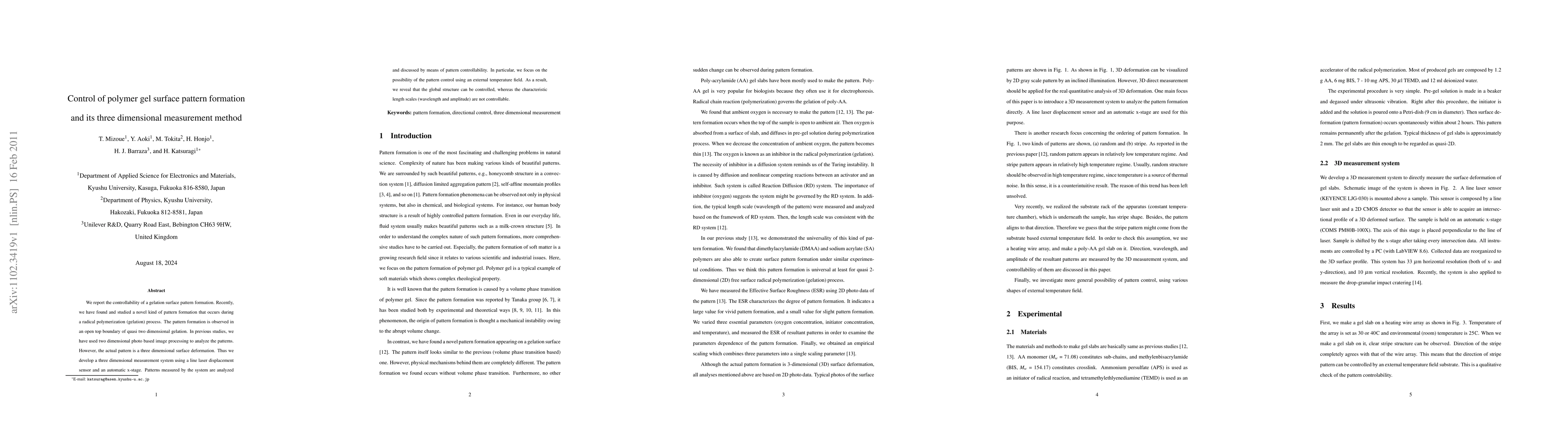 Researchers controlled a 3D surface pattern on a polymer gel using temperature fields, but found they could not control the pattern's wavelength or amplitude.