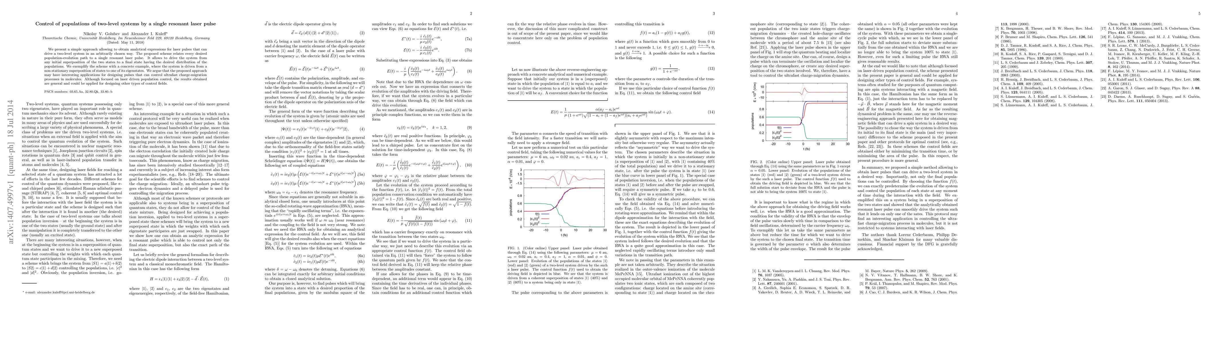 This paper proposes a method for controlling two-level systems using a single resonant laser pulse, providing analytical expressions for desired population evolution paths. The scheme can drive systems from any initial state to a final state with a specified population distribution, with potential applications in ultrafast charge-migration control in molecules.