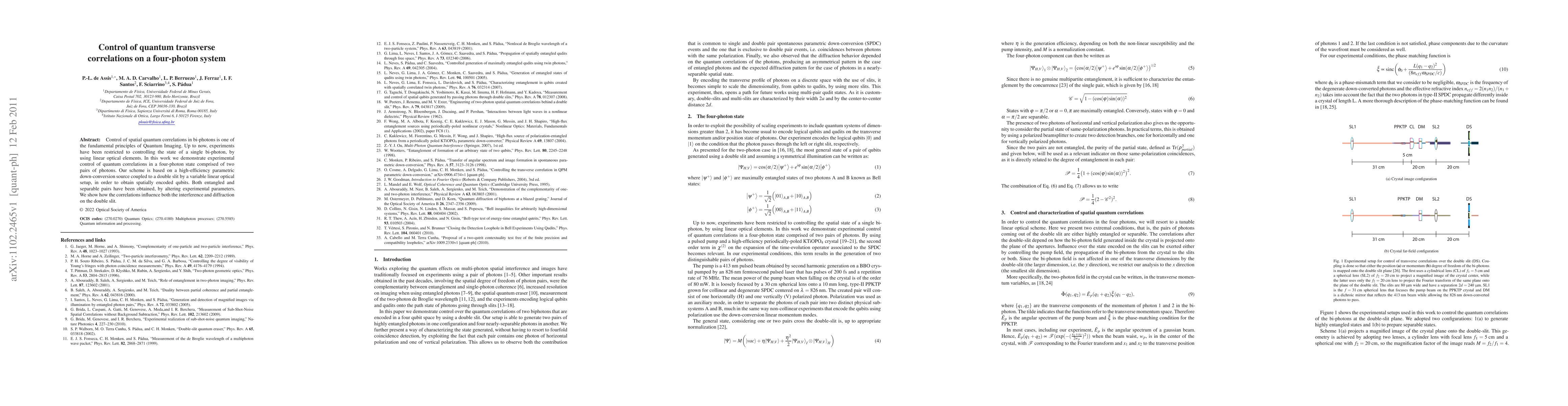 This paper demonstrates experimental control over quantum correlations in a four-photon system, utilizing a high-efficiency parametric downconversion source and a variable linear optical setup. The study shows how altering experimental parameters can produce both entangled and separable pairs, influencing the interference and diffraction patterns observed on a double slit.