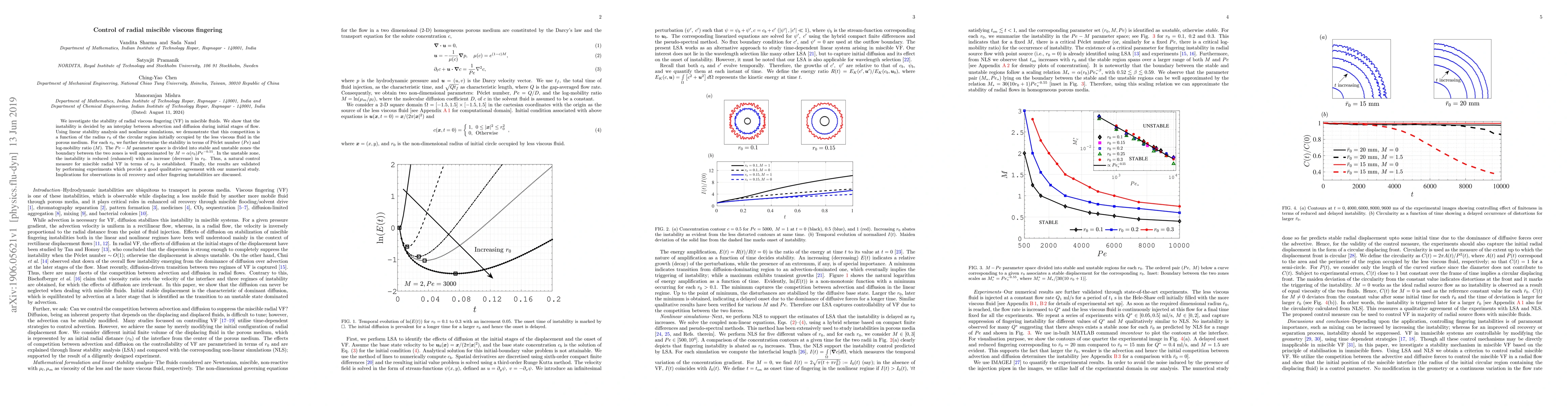 The paper presents a criterion for controlling radial miscible viscous fingering based on the competition between advective and diffusive forces, utilizing the initial position of the miscible interface as a control parameter.